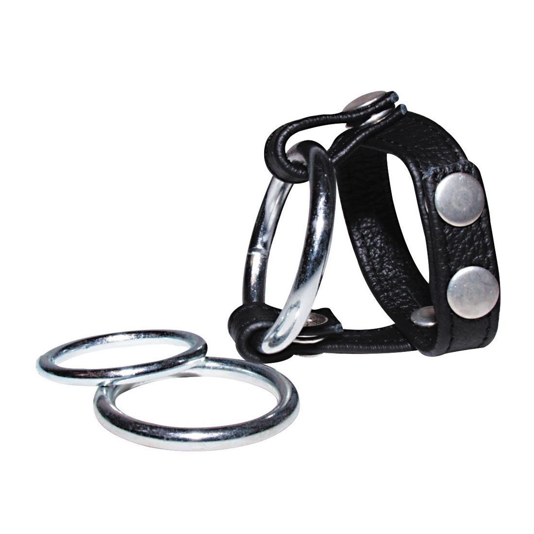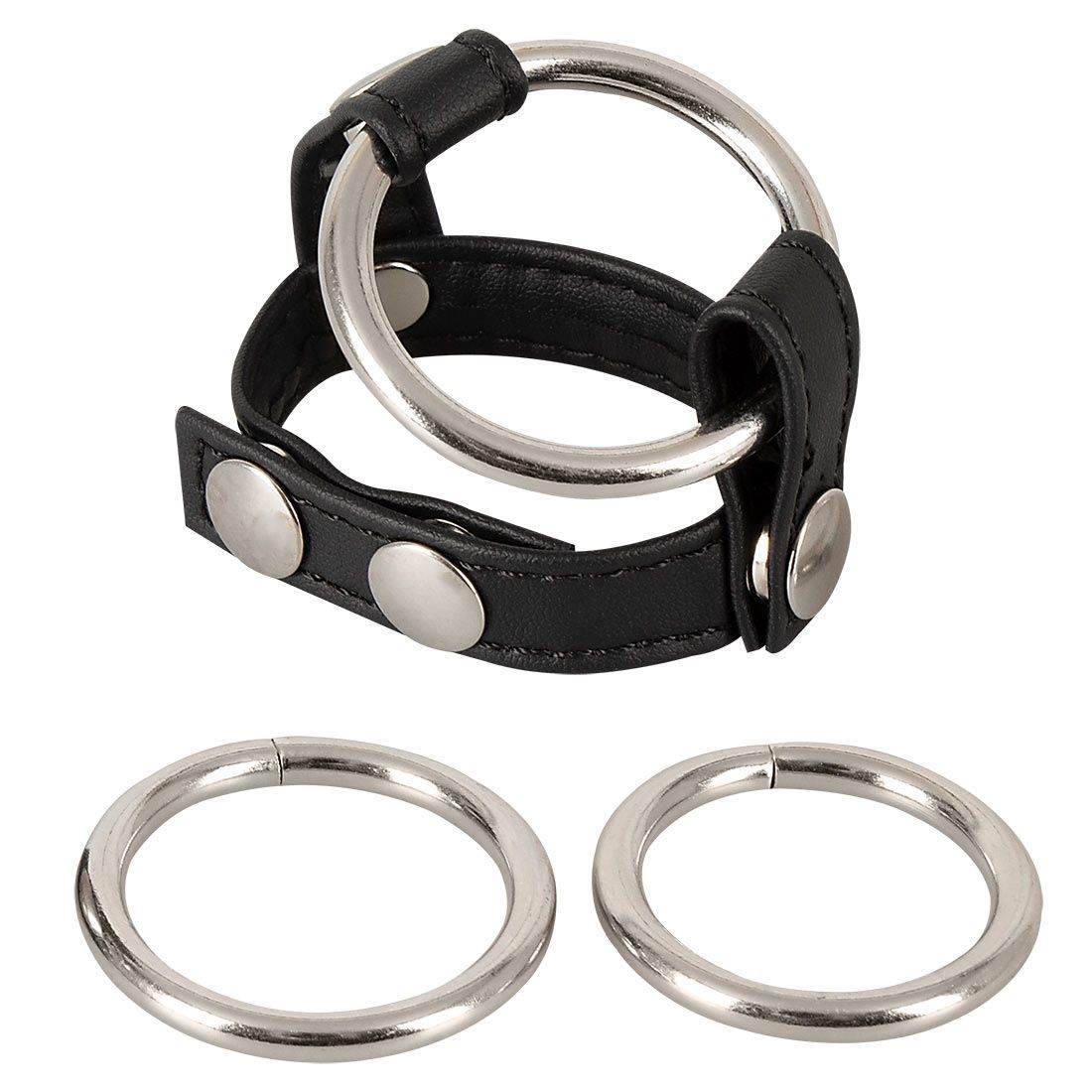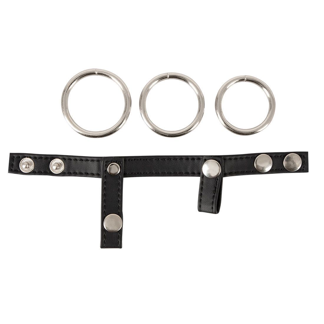 Penis-Riemen mit 3 Metall-Penisringen Cock Nieten Hoden Männer Sex-Spielzeug " T13