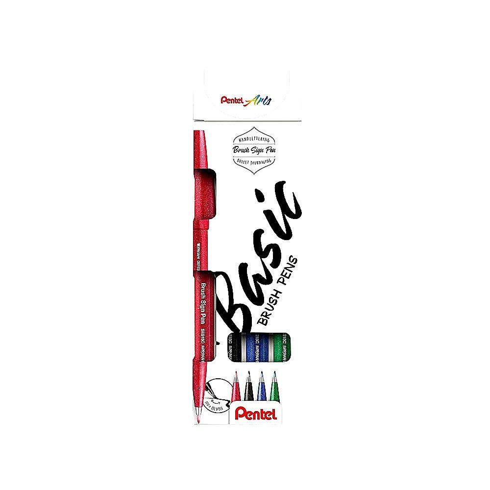 Pentel Pentel Sign Pen Brush Touch 4er Set grün für Lettering Zeichnen Schule