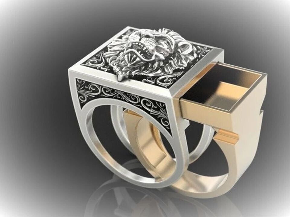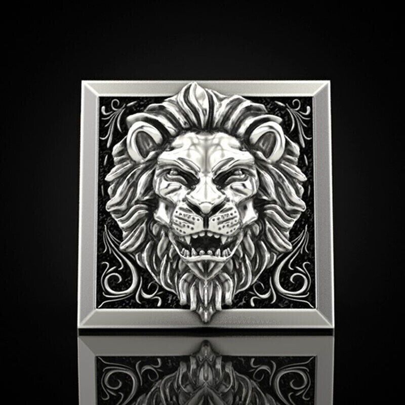 Peppiger Löwen Herren Siegel Ring mit Geheimfach (HR120)