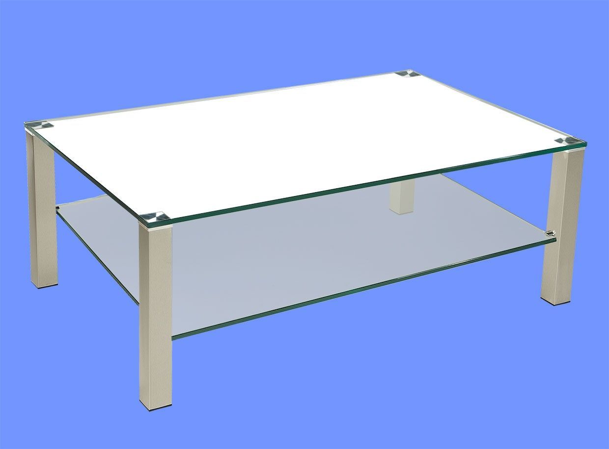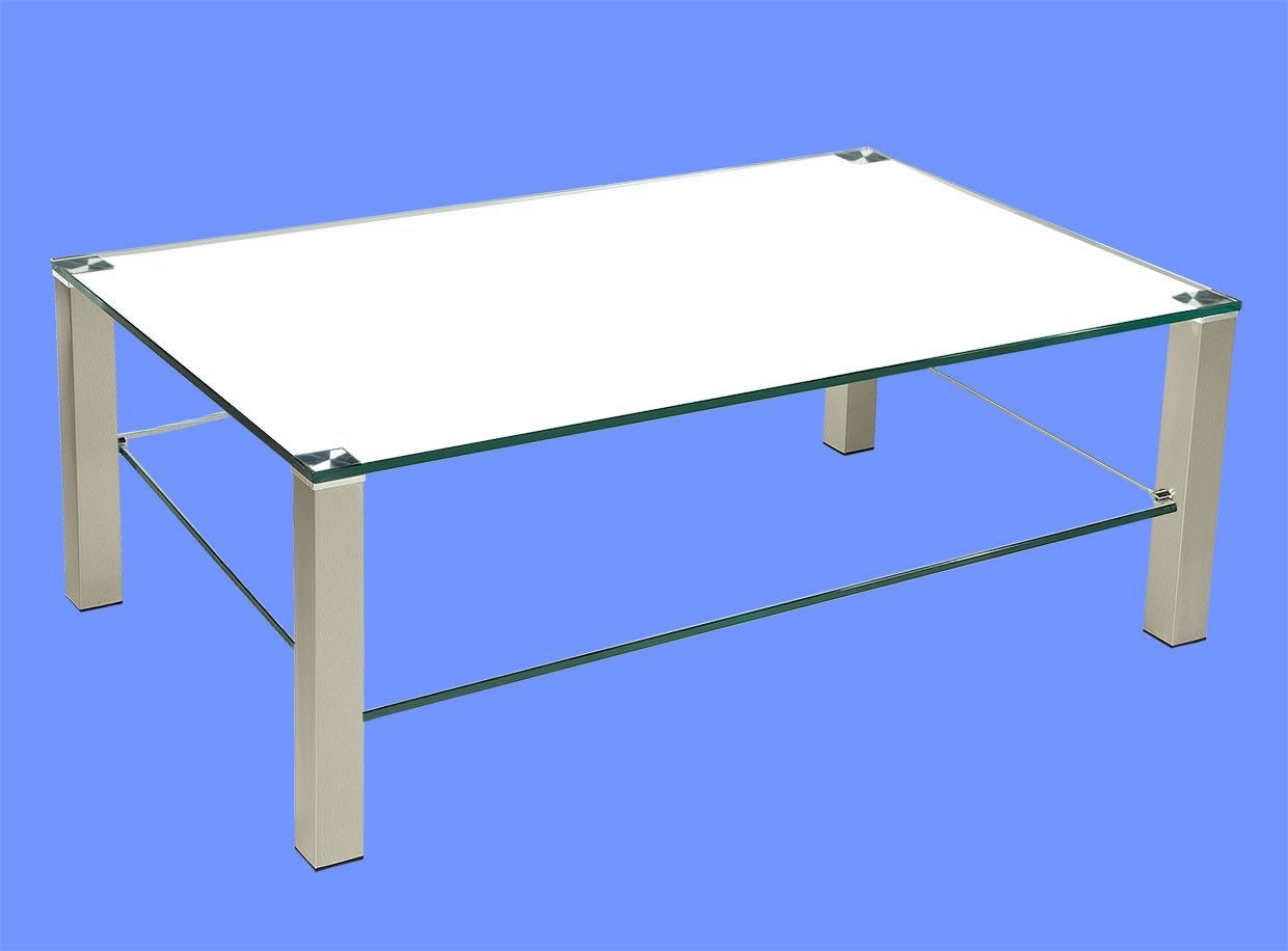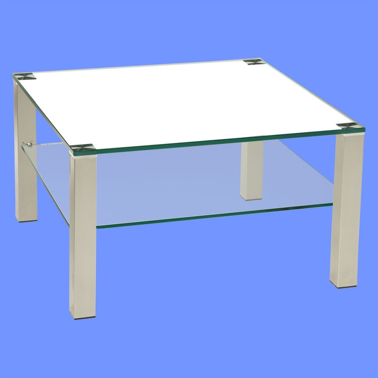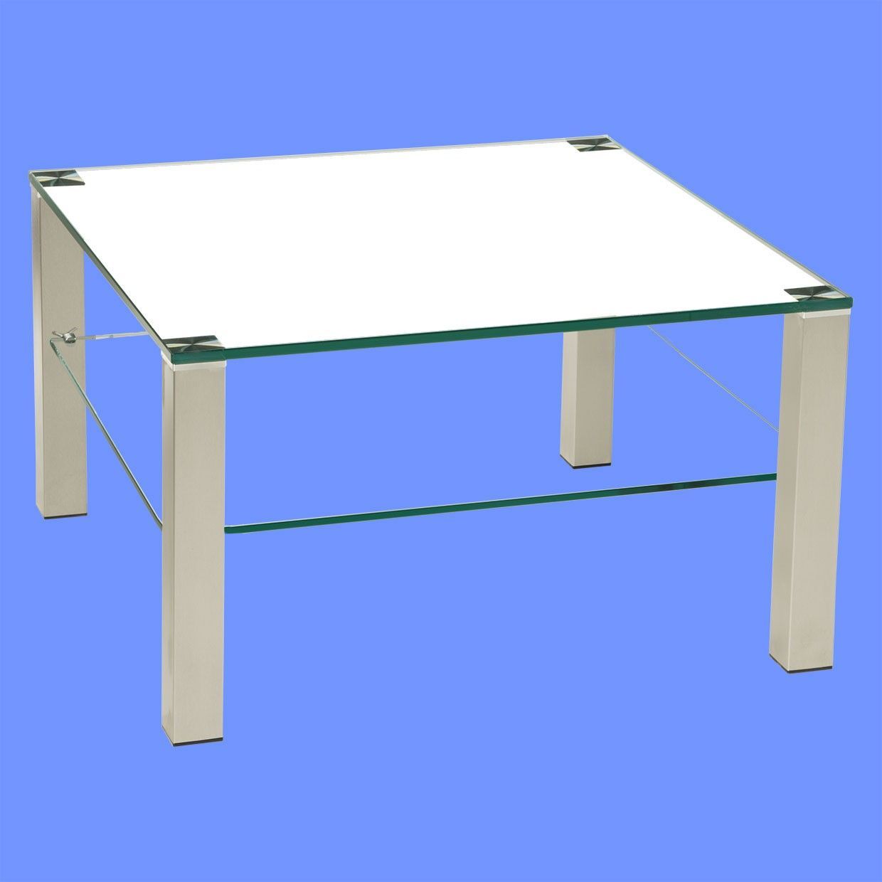 PER-C1BH Couchtisch Weißglas mit Rollen mit/ ohne Ablage. Stollen echt Edelstahl