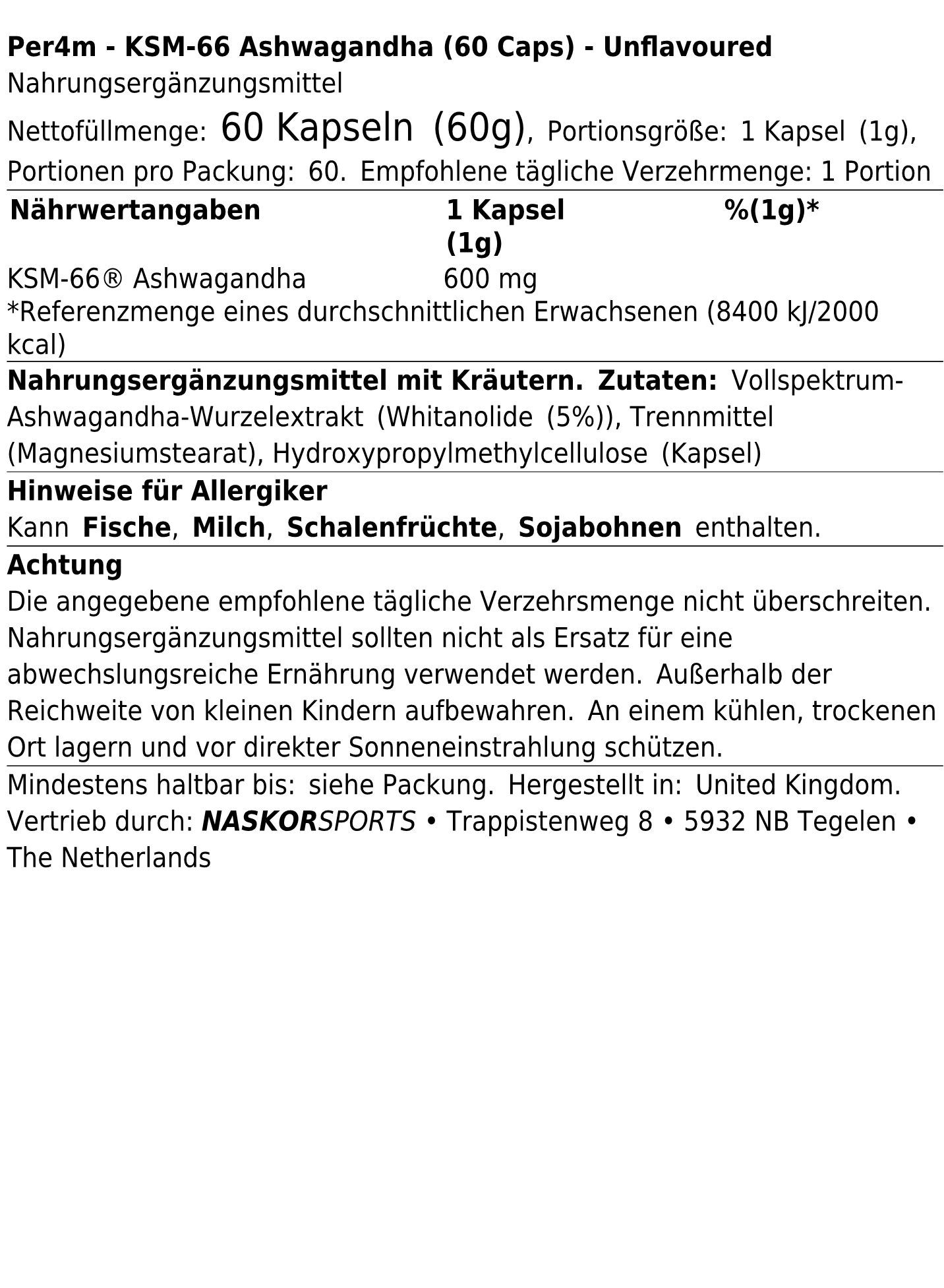 Per4m KSM-66 Ashwagandha (60 Caps)