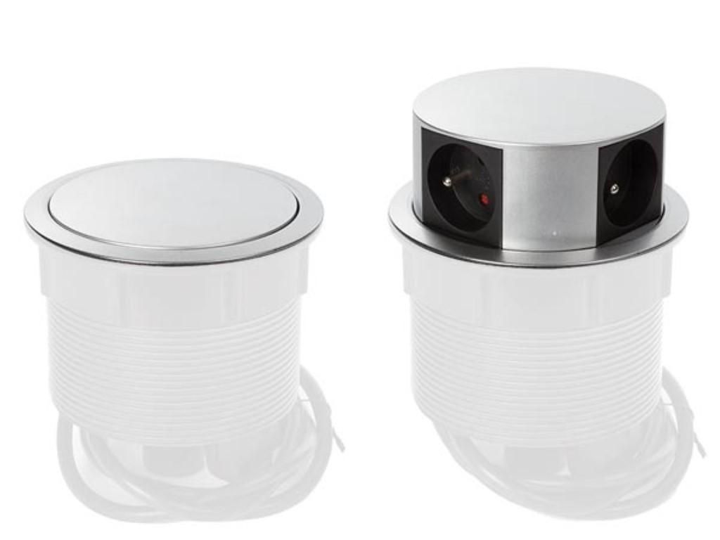 • Perel 3-FACH-STECKDOSENTURM - Versenkbar - Stecker-typ E (FRANZÖSISCHES SYSTEM)