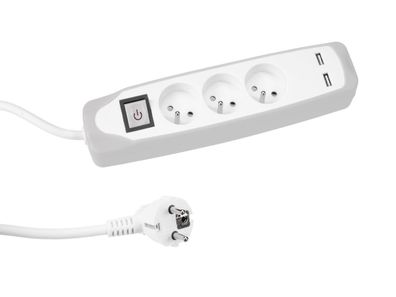 • 3-FACH-STECKDOSENLEISTE MIT Schalter - 2 USB-PORTS - GRAU/WEIß - KABEL: 1.5 m - STEC