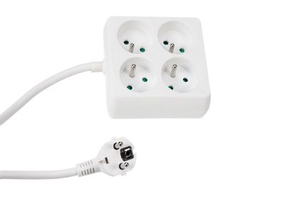 • 4-FACH-STECKDOSENLEISTE - Quadratisch - KABEL: 1.5 m - Stecker-typ E (FRANZÖSISCHES