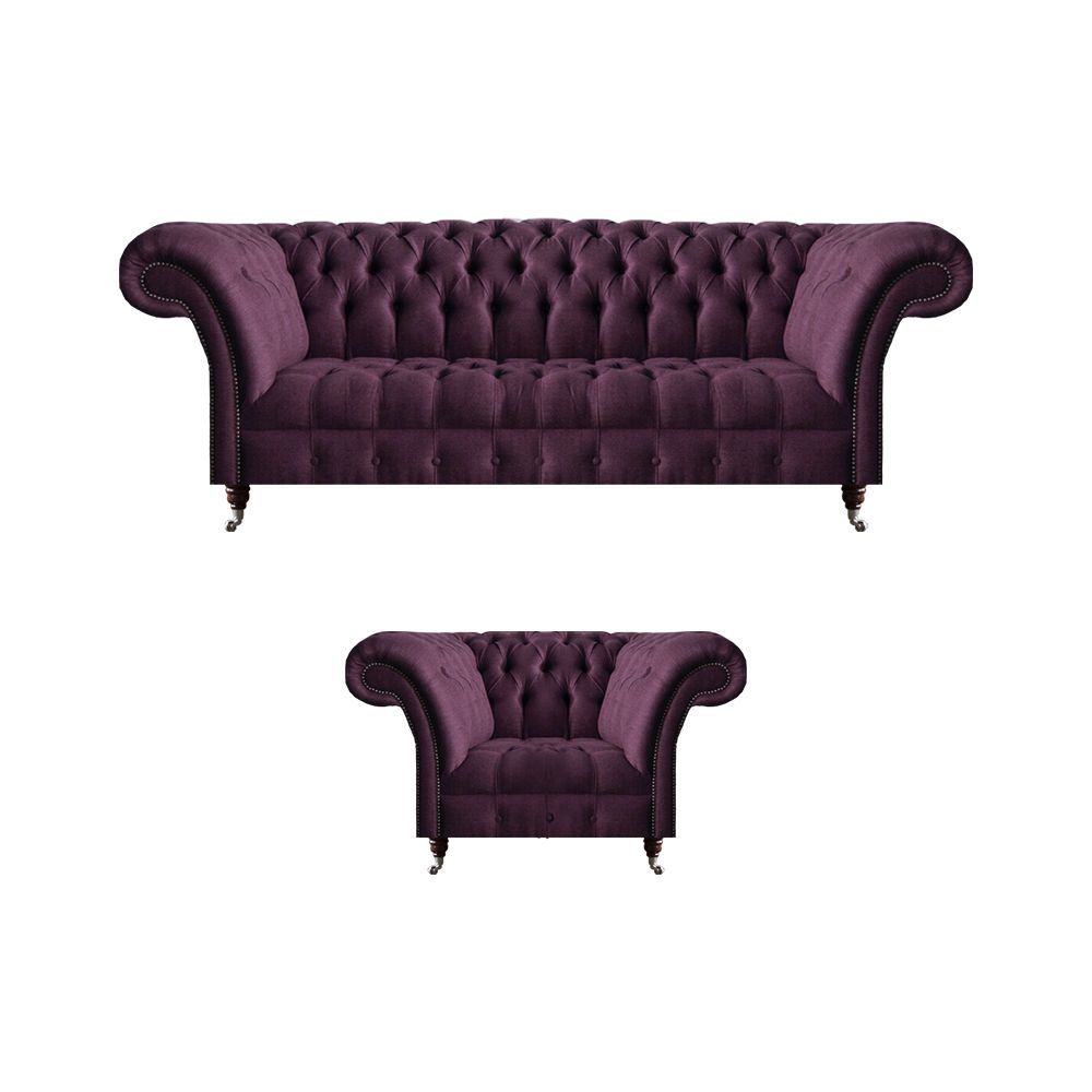 Perfekte Chesterfield Designer Möbel Luxus Lila Dreisitzer Einsitzer