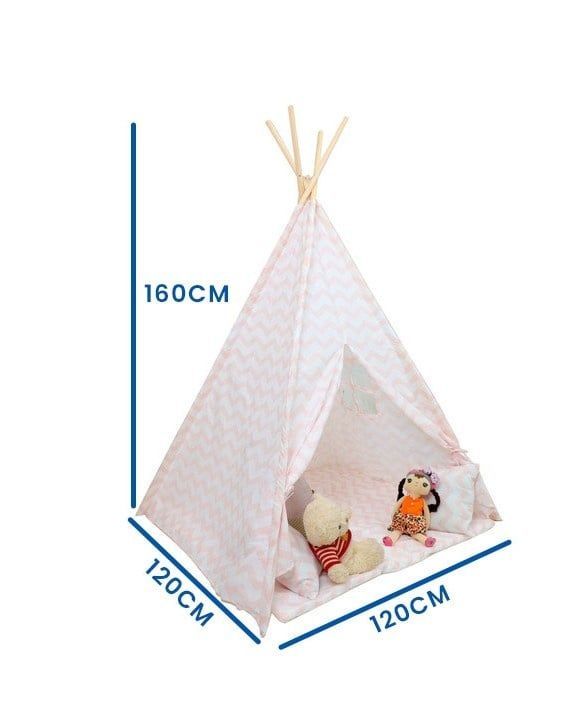 Perfektes Geschenk: Rosa Tipi-Zelt mit Zickzack-Muster, Matte & Kissen