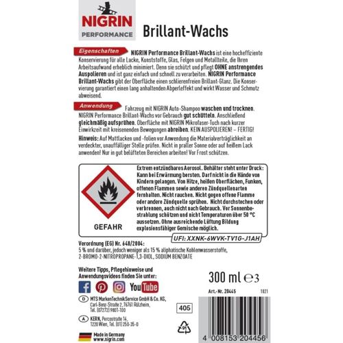 Nigrin Performance Brillant-Wachs Detailer Spray 300ml