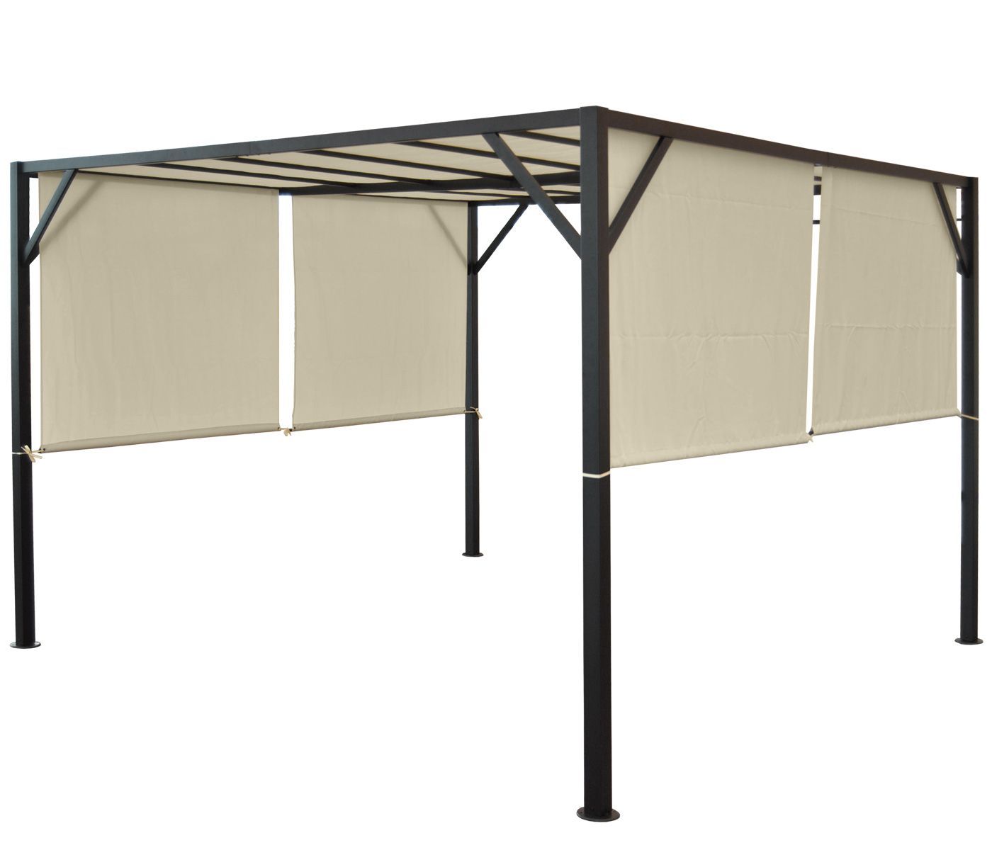 Mendler Pergola Baia, Pavillon Terrassenüberdachung, stabiles 6cm-Stahl-Gestell + Schiebedach