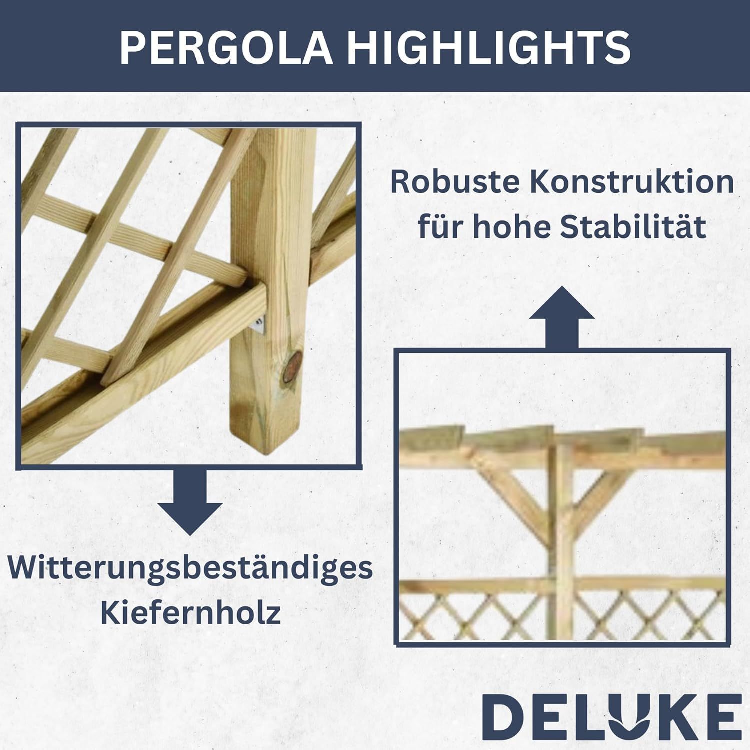Pergola Holz GITTO 3x2m Kiefernholz Rankhilfe Pergola Holz Bausatz freistehend