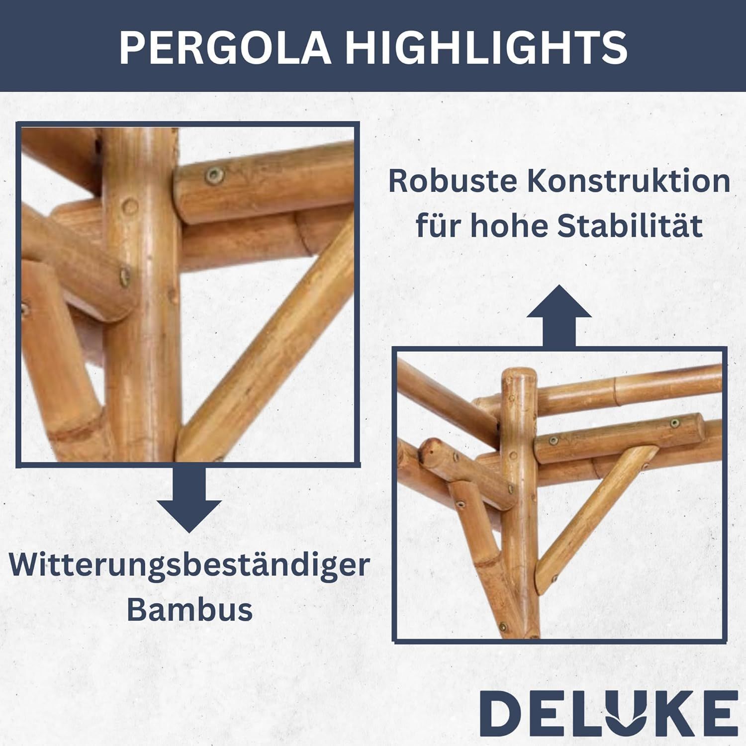 Pergola Holz LEOD 1,7x1,7x2,2m Bambus Terrassenüberdachung Sonnenschutz Rankhilfe