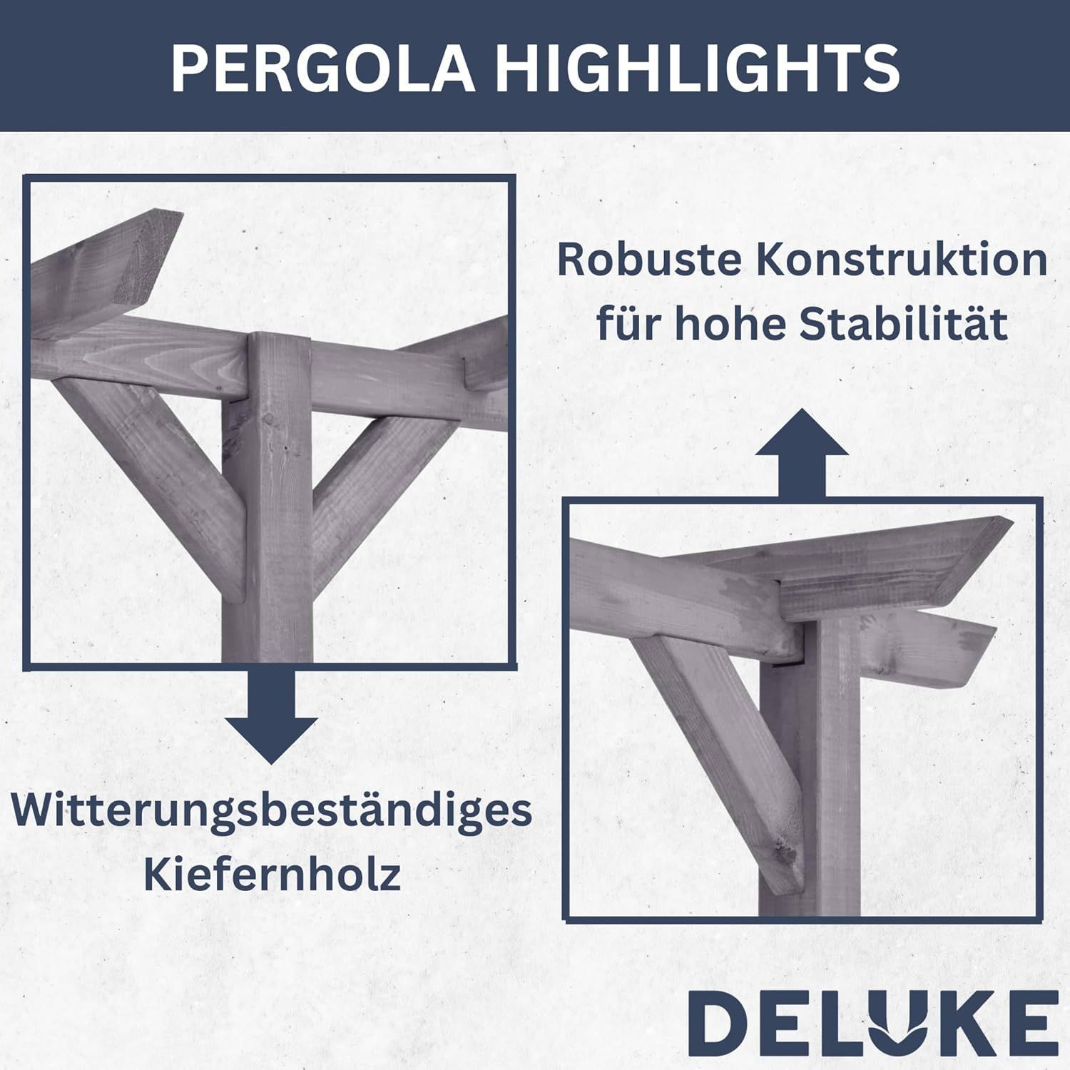 Pergola Holz LURV Grau 4x2m Kiefernholz Rankhilfe Pergola Holz Bausatz freistehend