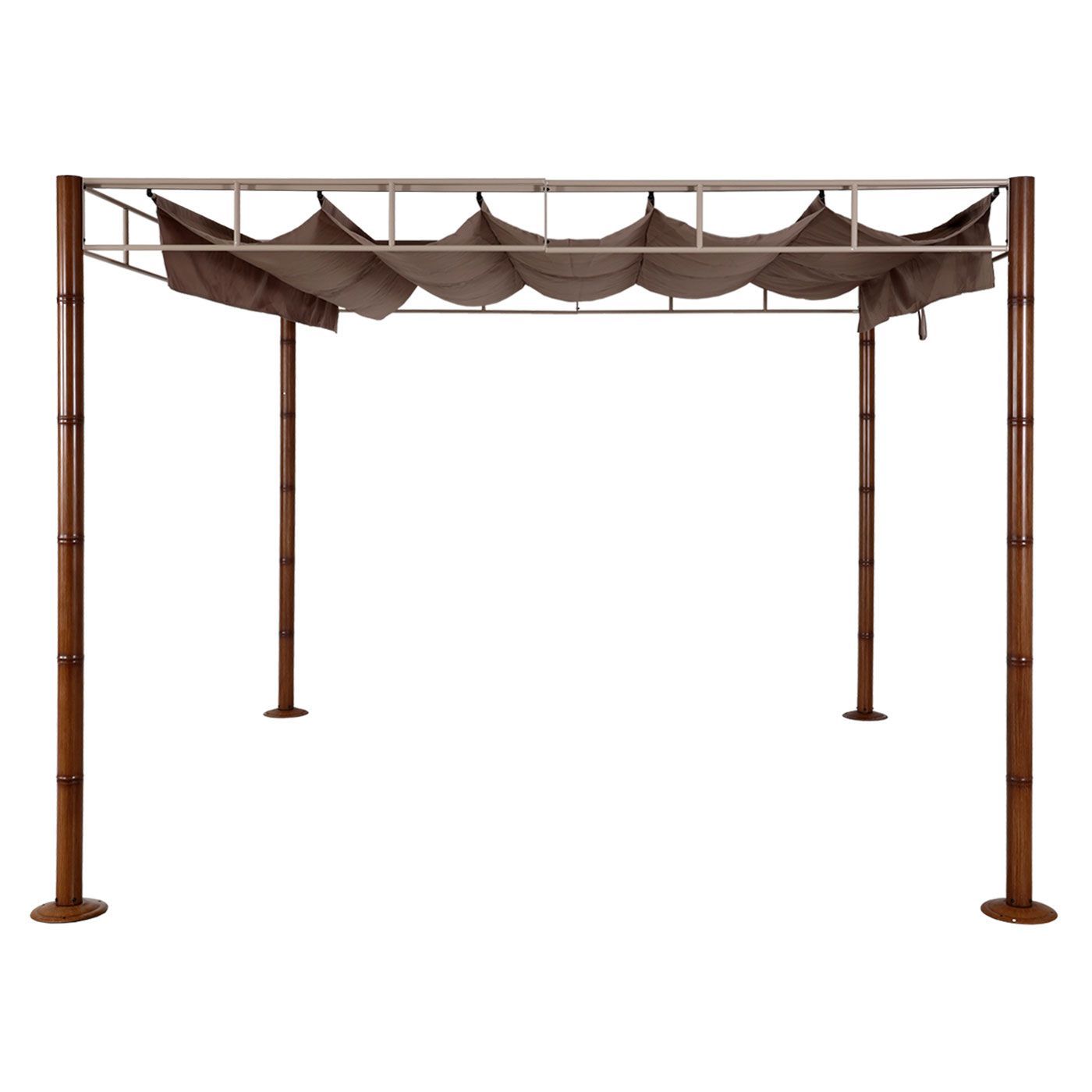 Mendler Pergola HWC-L42, Garten Pavillon, stabiles 7cm-Metall-Gestell 3x3m Bambus-Optik