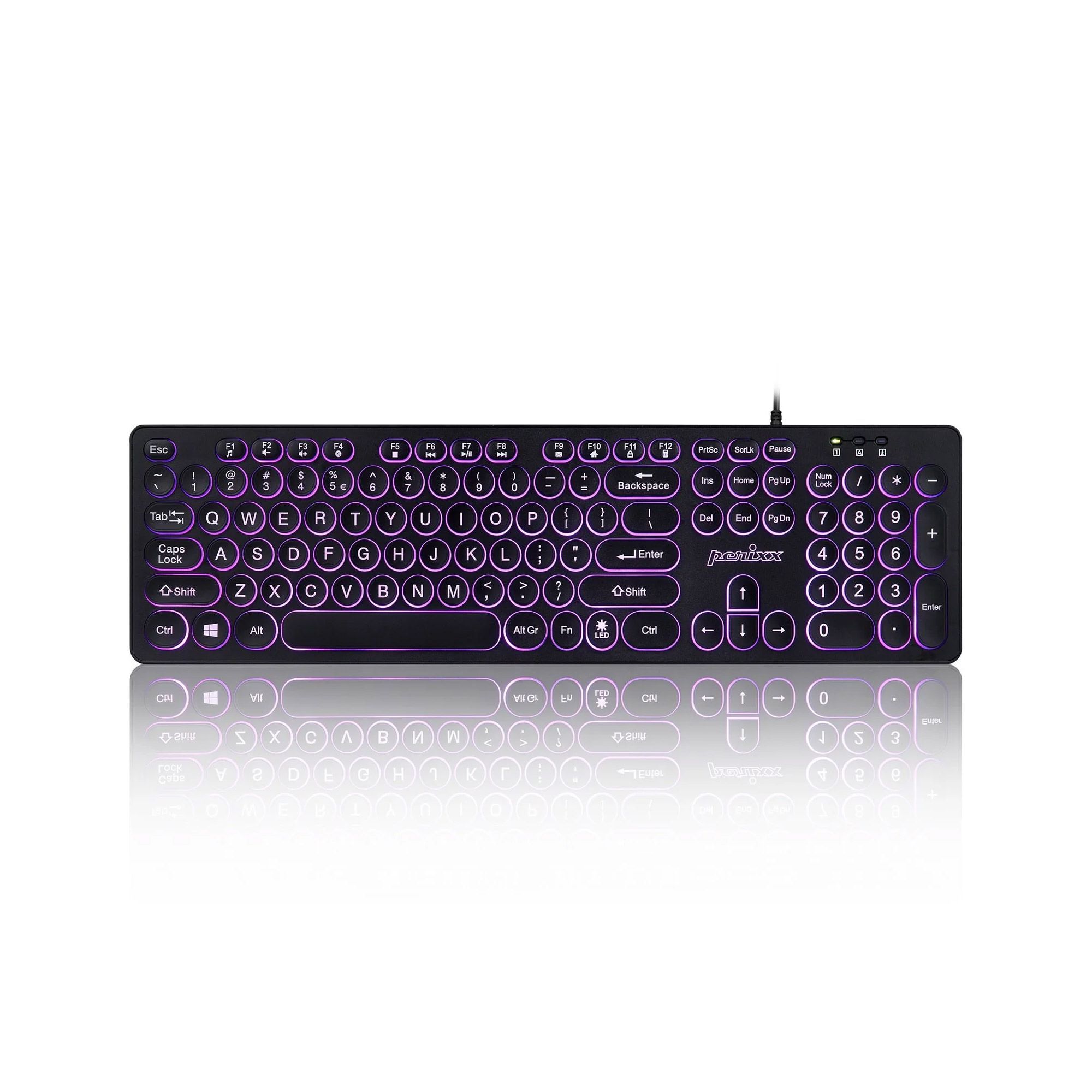 Perixx Perixx Periboard-317r, US, dreifarbig, runde Tasten, kabelgebunden, schwarz