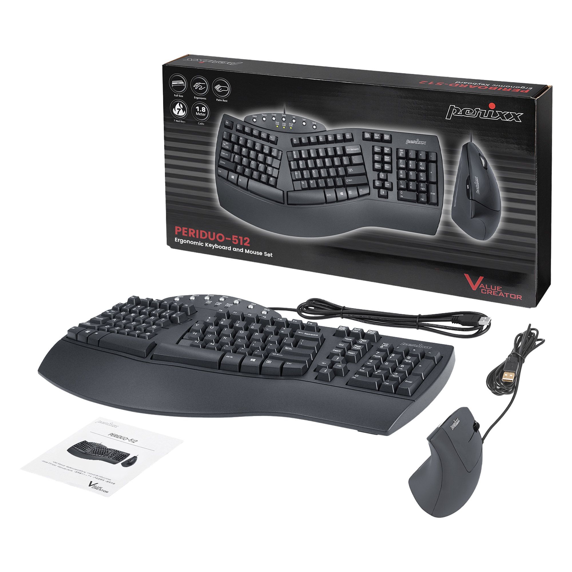Perixx Perixx Periduo-512 DE, Tastatur- und Maus-Set, kabelgebunden, ergonomisch