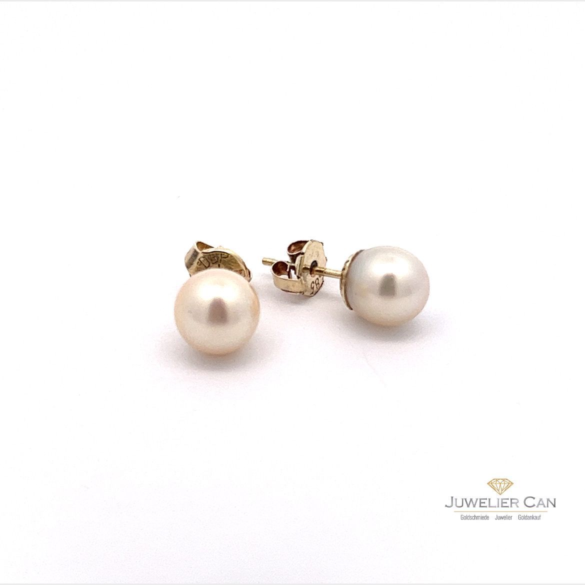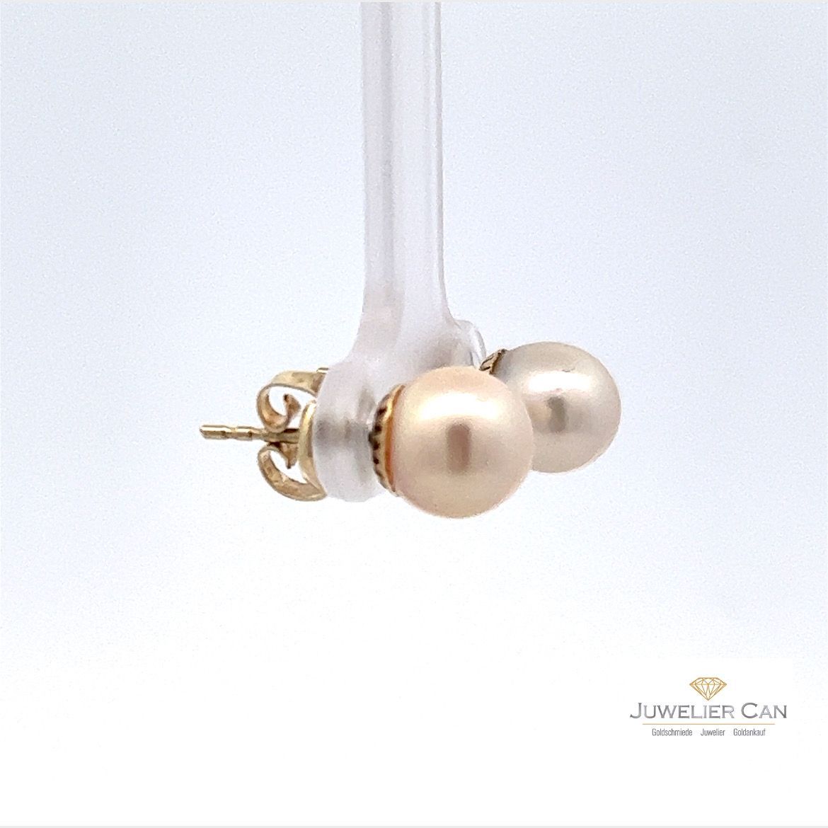 Perl- Ohrstecker in Gelbgold 14 kt, Salzwasser Zuchtperle Ø 8,40 mm