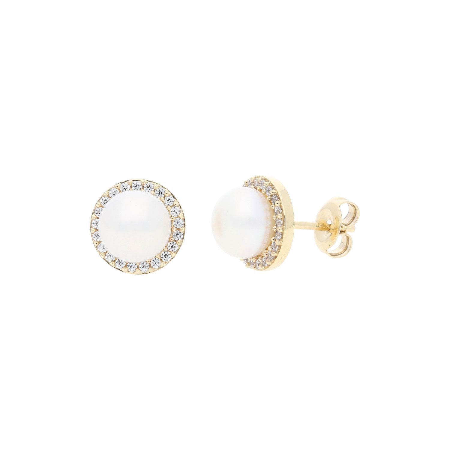 Perlen Ohrstecker Gold 333 Süßwasser Zuchtperle und Zirkonia JL10-06-2641 JuwelmaLux