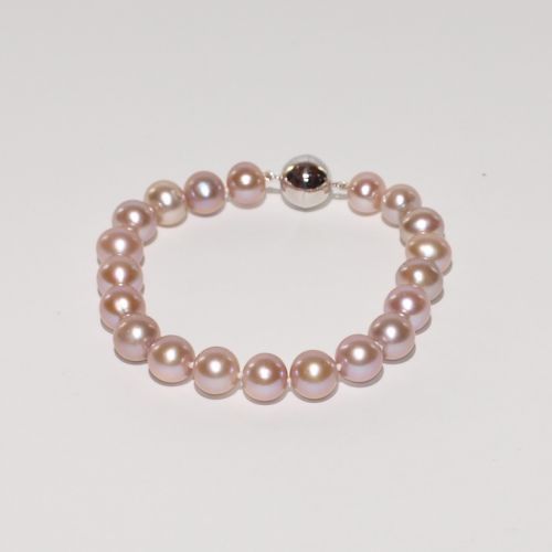 Perlenarmband Rosa Lila - Süßwasserperlen Ø 8,5 - 9,5 mm