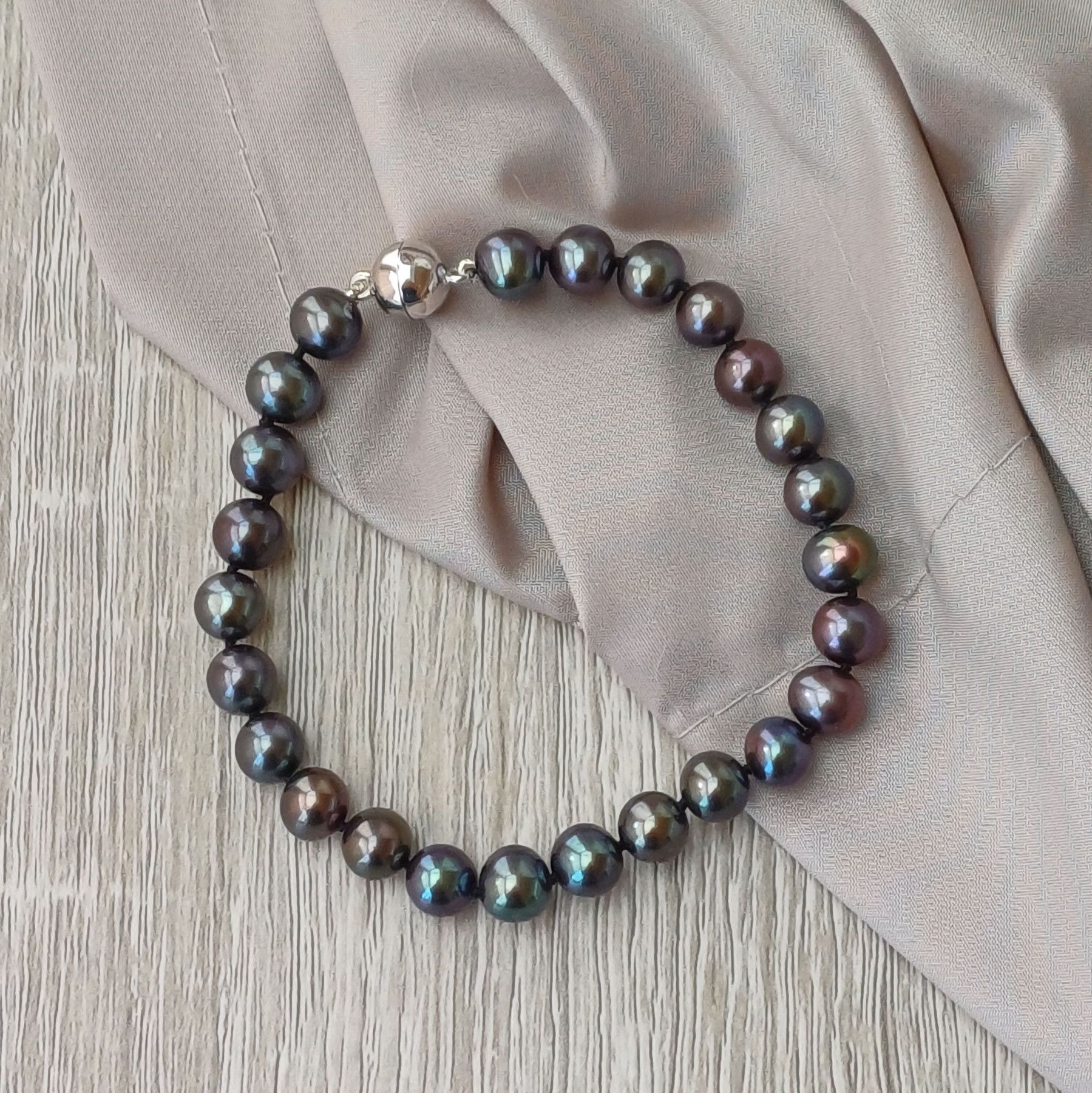 schönes Perlenarmband, das durch seine leicht glänzenden schwarzen Süßwasserperlen besticht. Das Armband ist ein elegantes Accessoire, das vielseitig kombiniert werden kann, egal ob zum Alltagsoutfit oder für besondere Anlässe.
