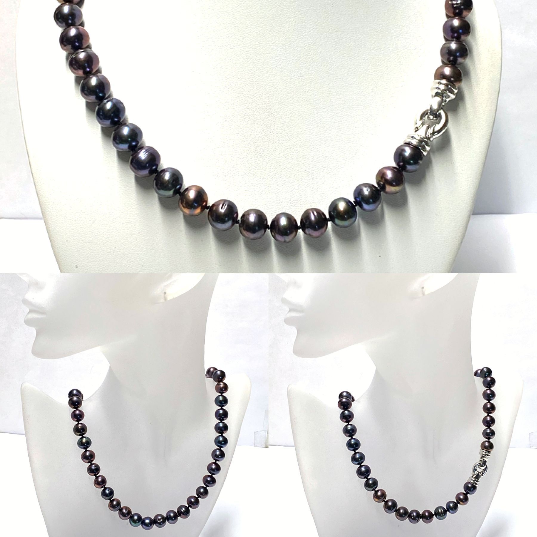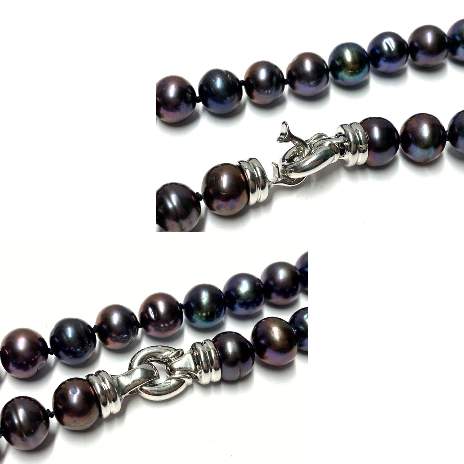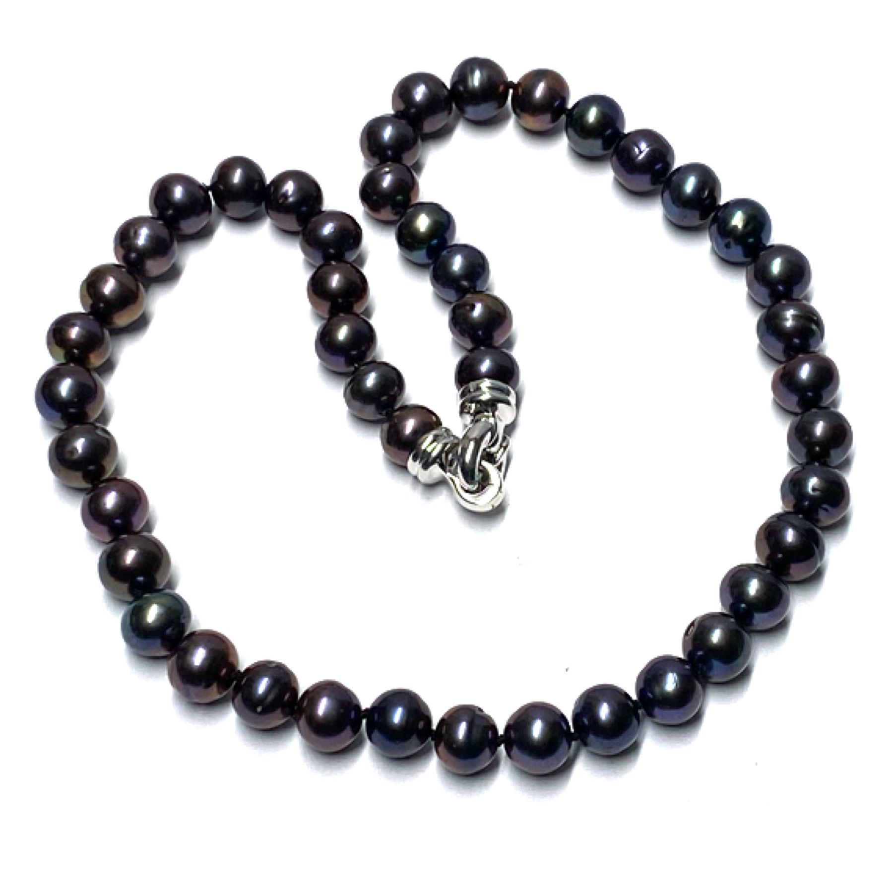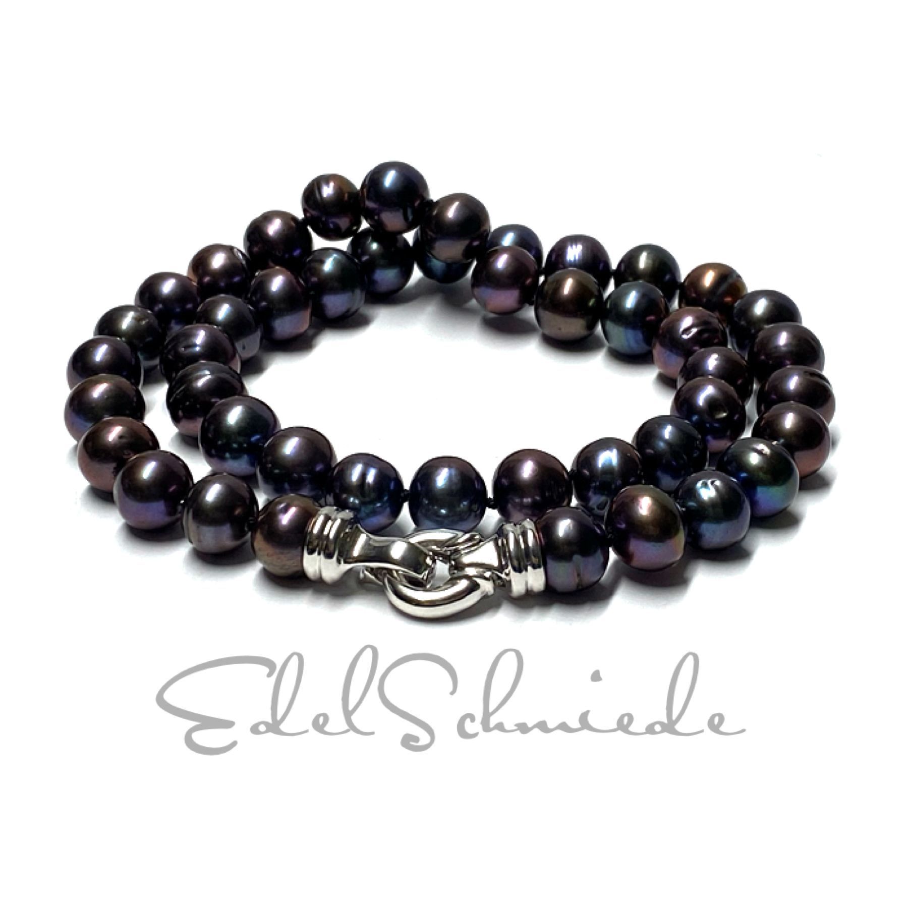 Perlenkette 925 Silber rhodiniert Perlen Süßwasserzuchtperlen Peacock 11-12mm Schnapp