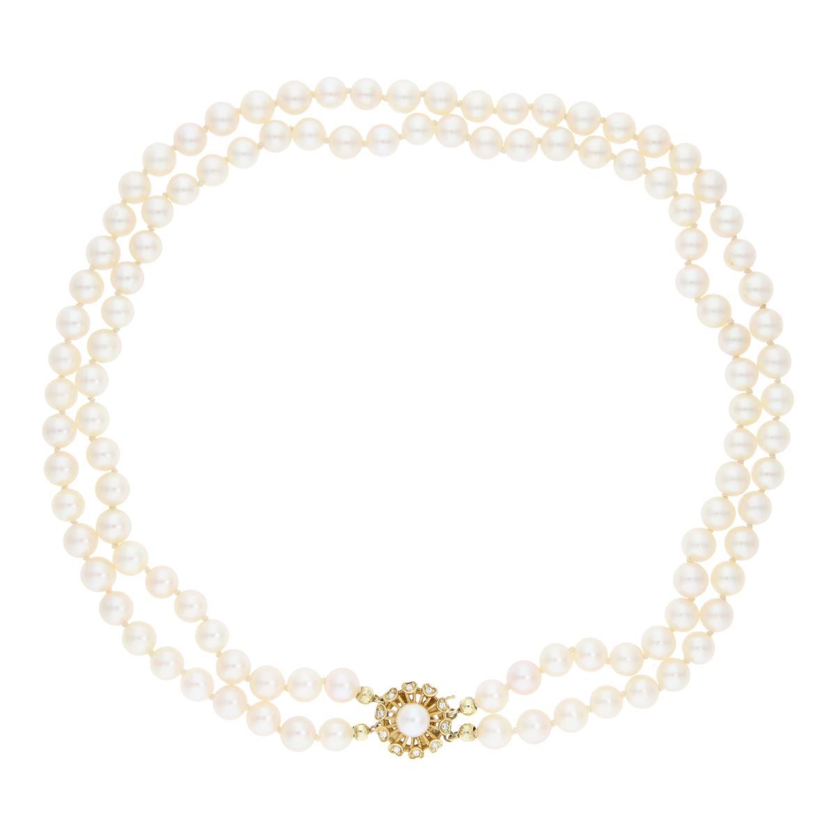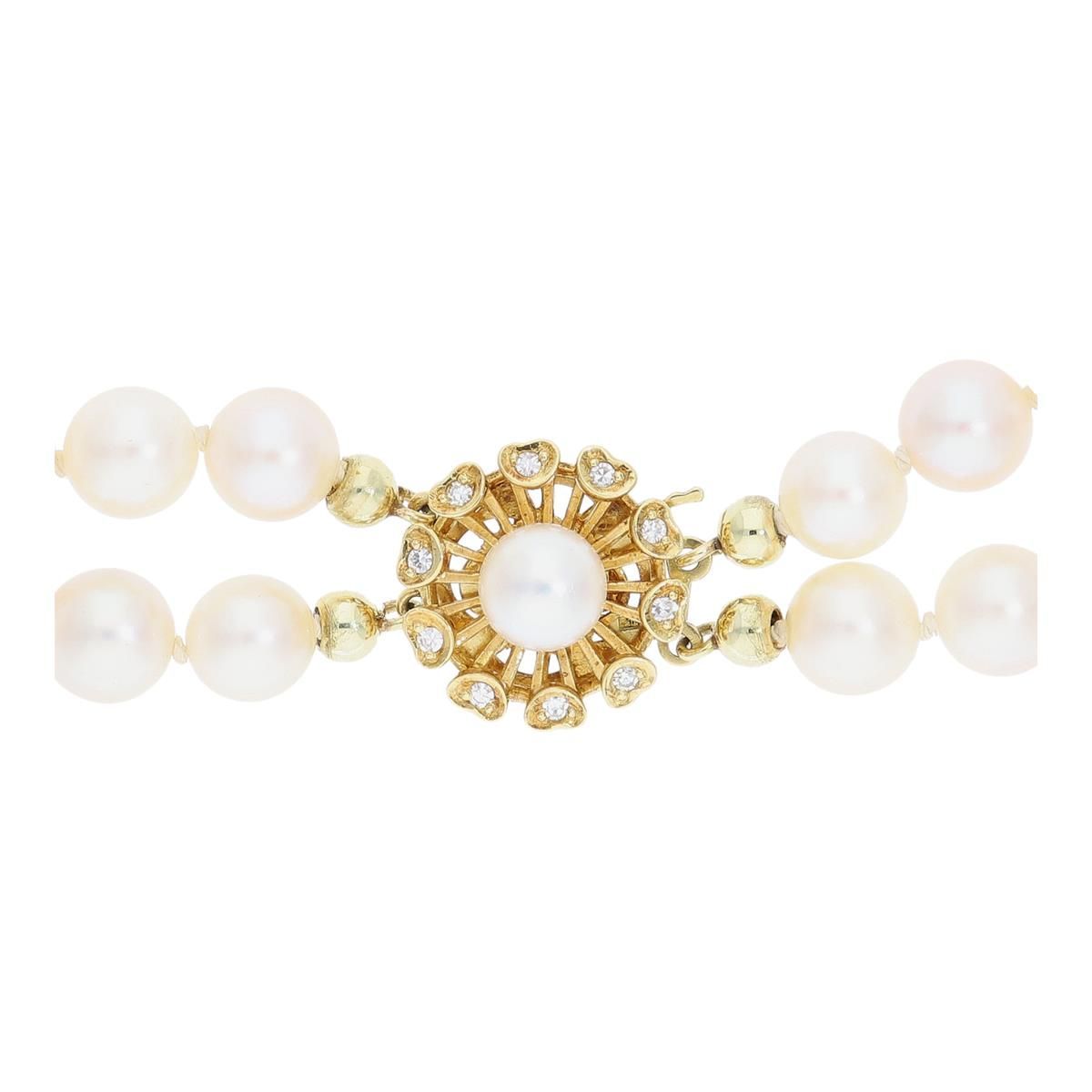 Perlenkette doppelreihig Gold 750 Diamanten Second Hand 25323990 getragen