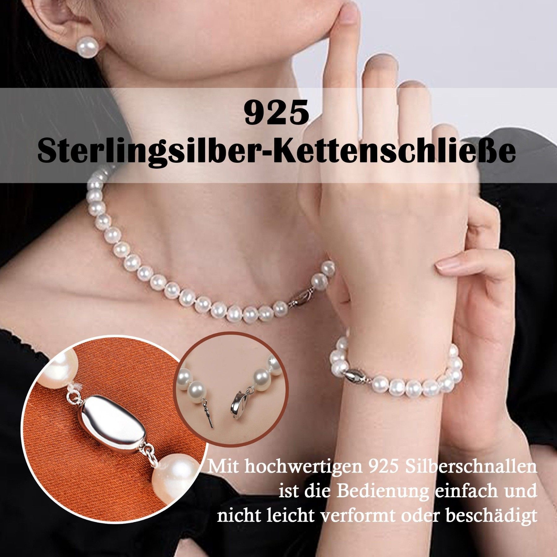Muschel Sterling Silber Perlenkette Armband Ohrringe, Choker Perle Halskette Set
