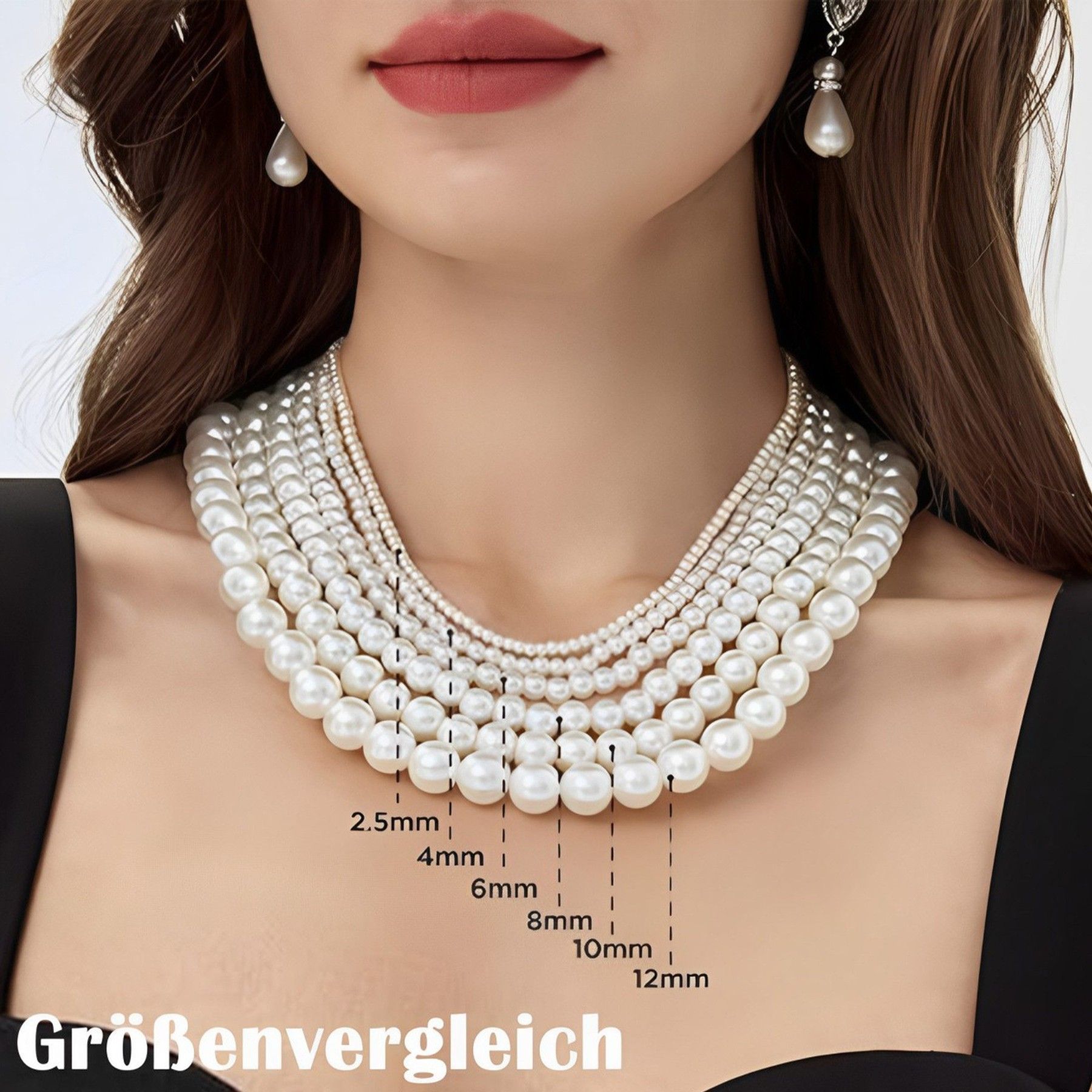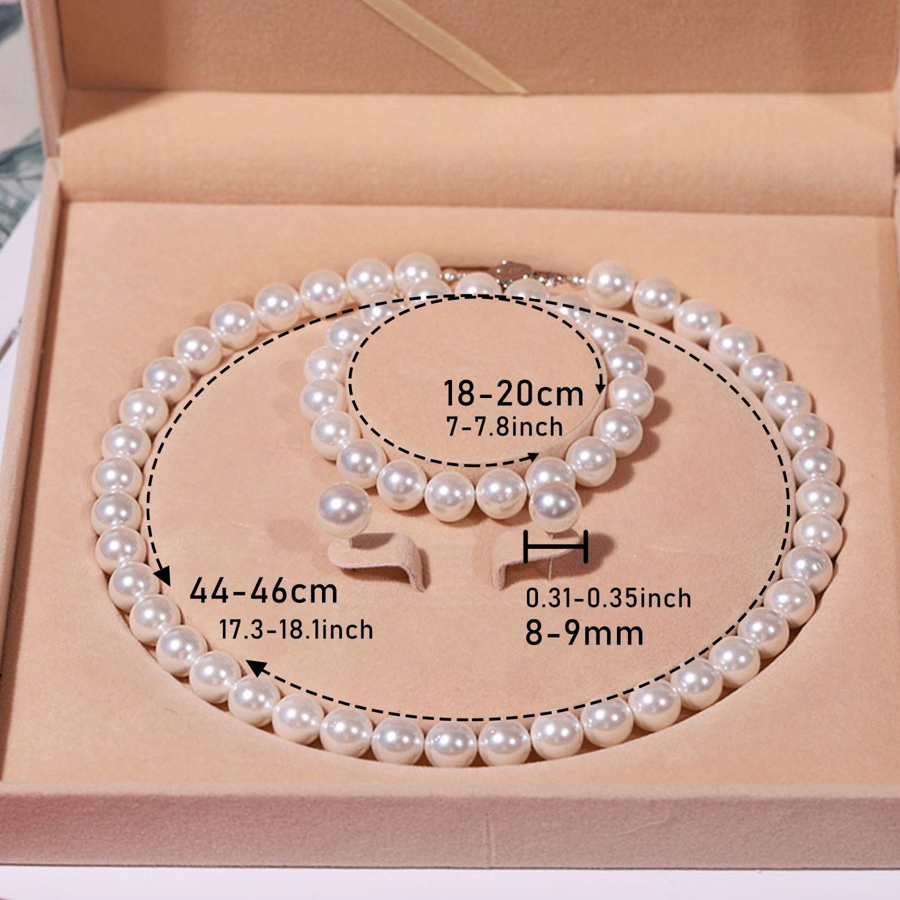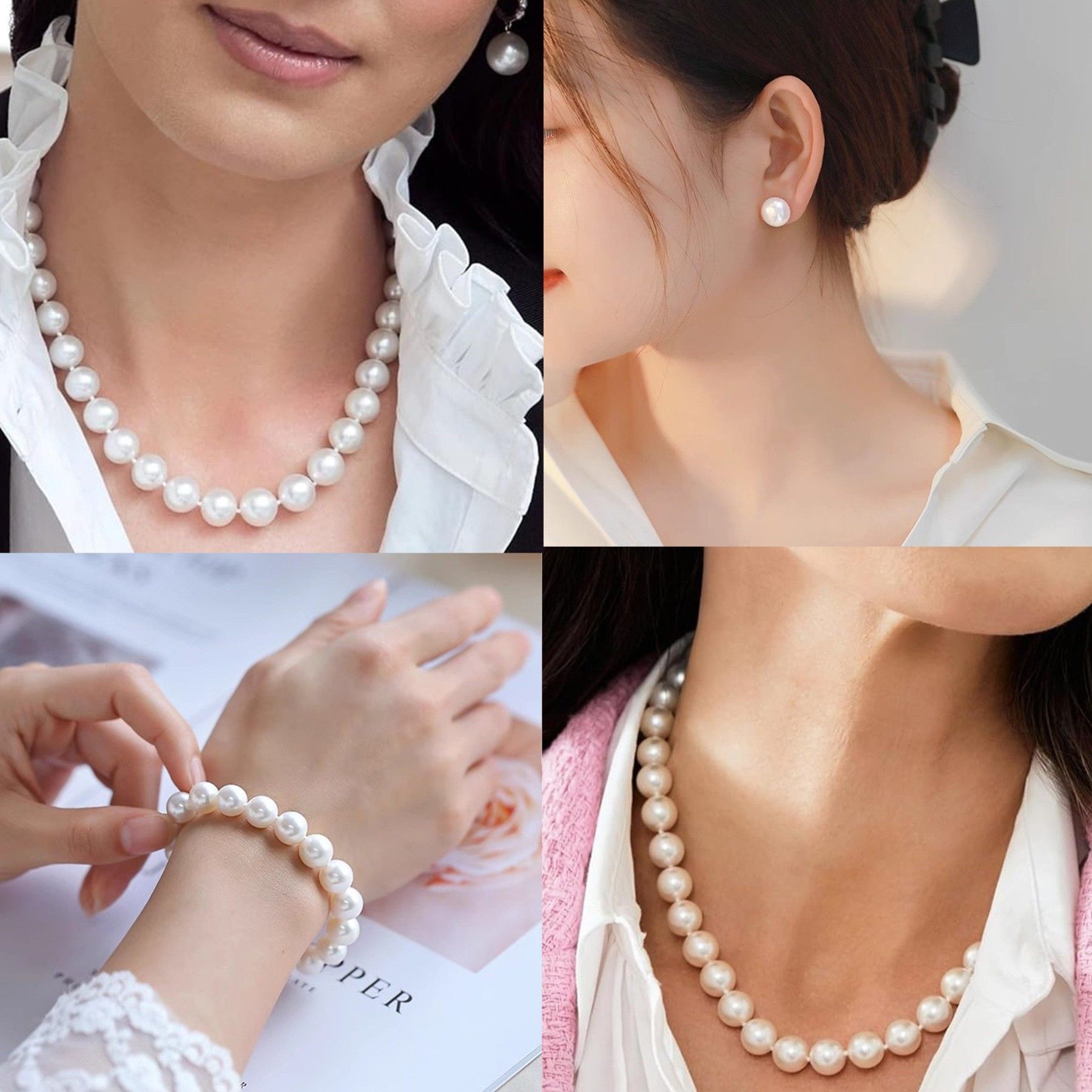 Perlenketten-Set 8mm Muschel Perlenketten Set, Frauen Halskette Armband Ohrringe