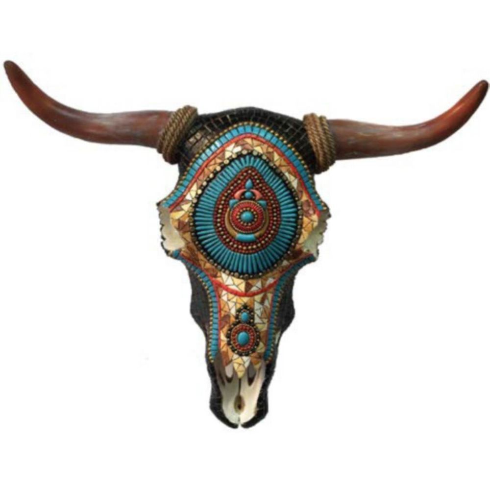 Perlenverzierter Western Bisonschädel