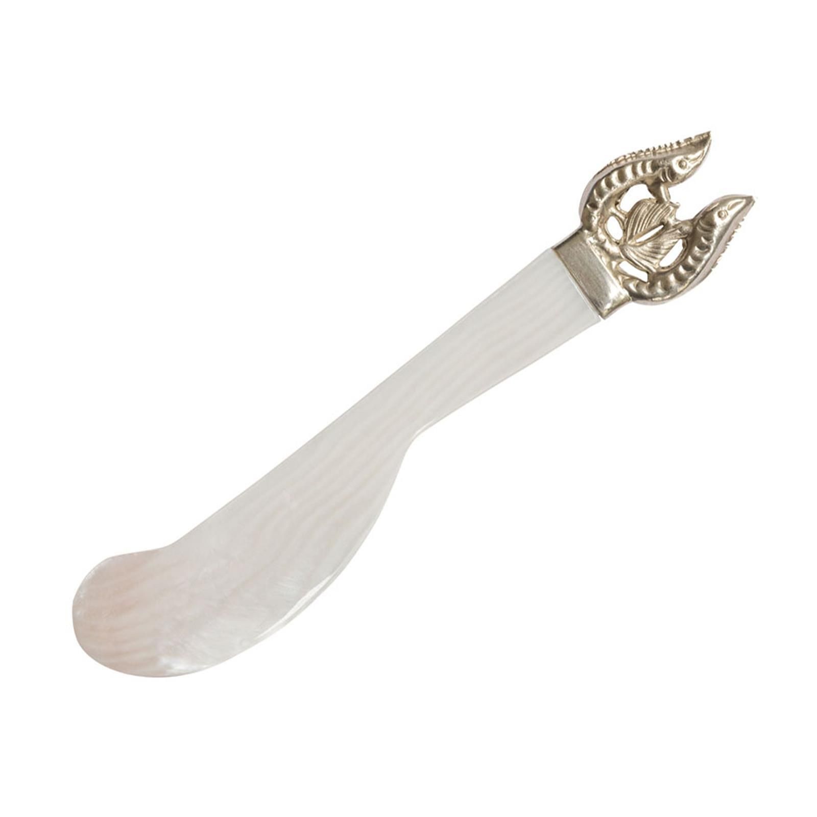 Perlmutt Kaviarmesser 13.5 cm Fisch Dekor versilbert Buttermesser Streichmesser