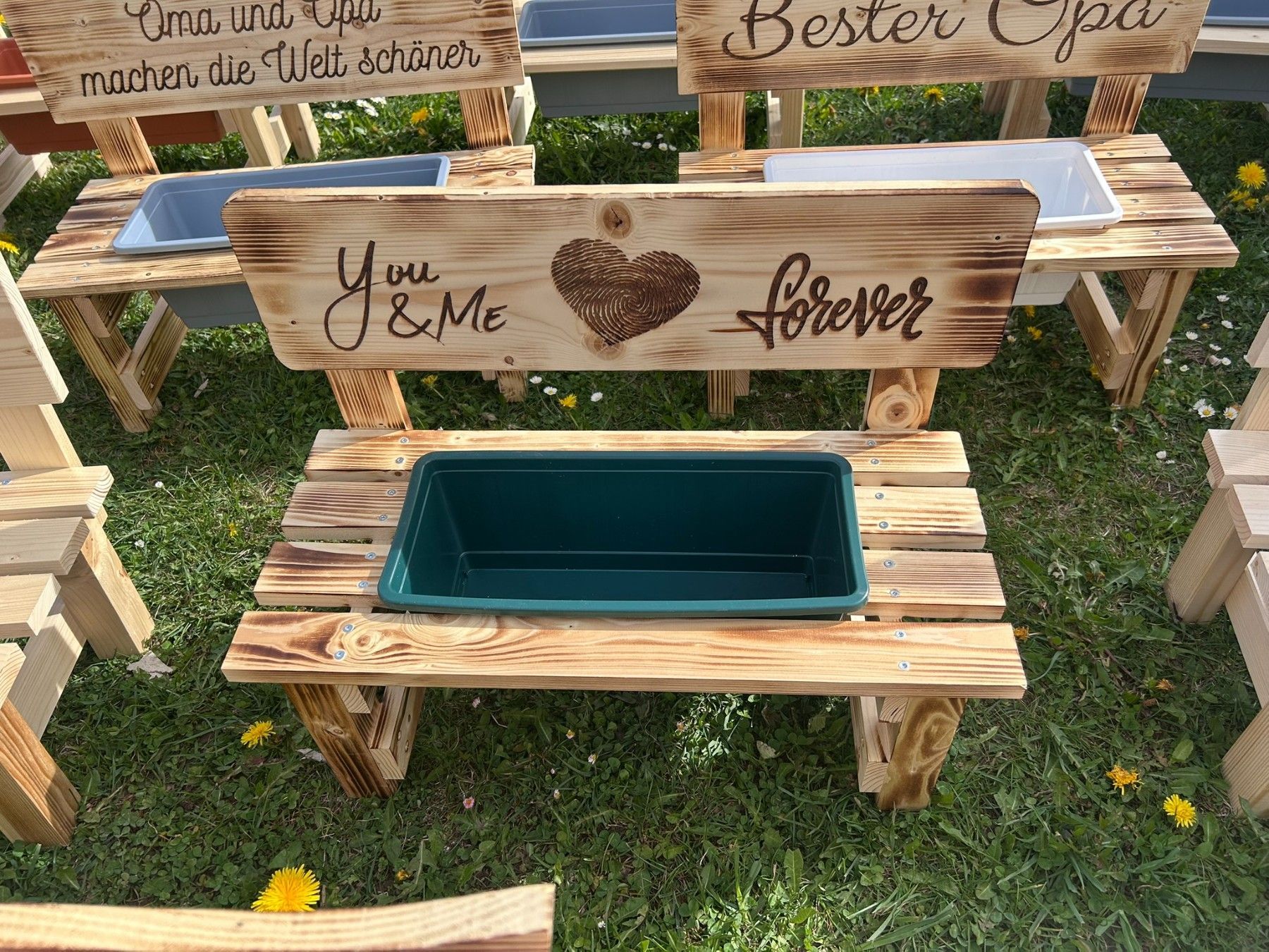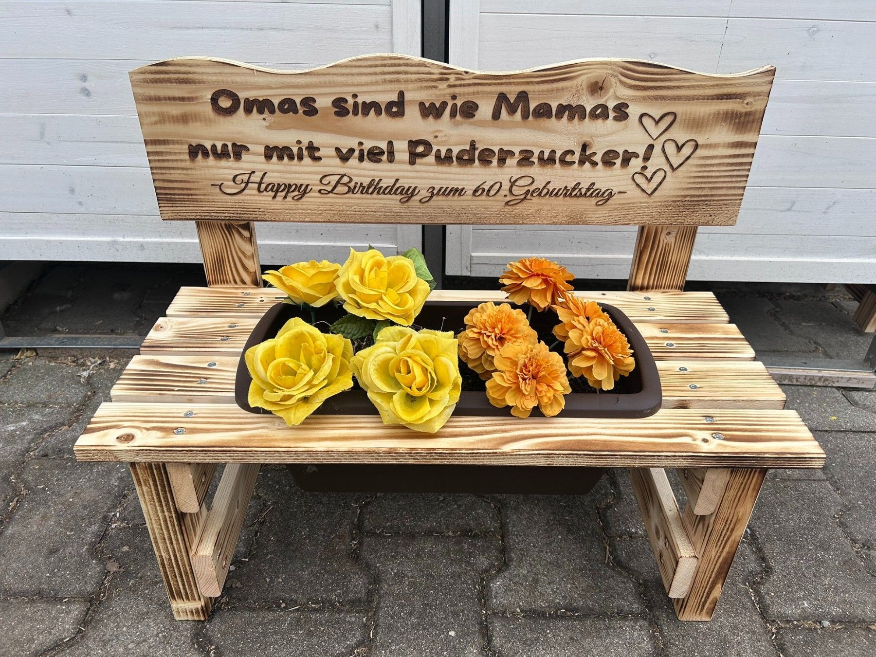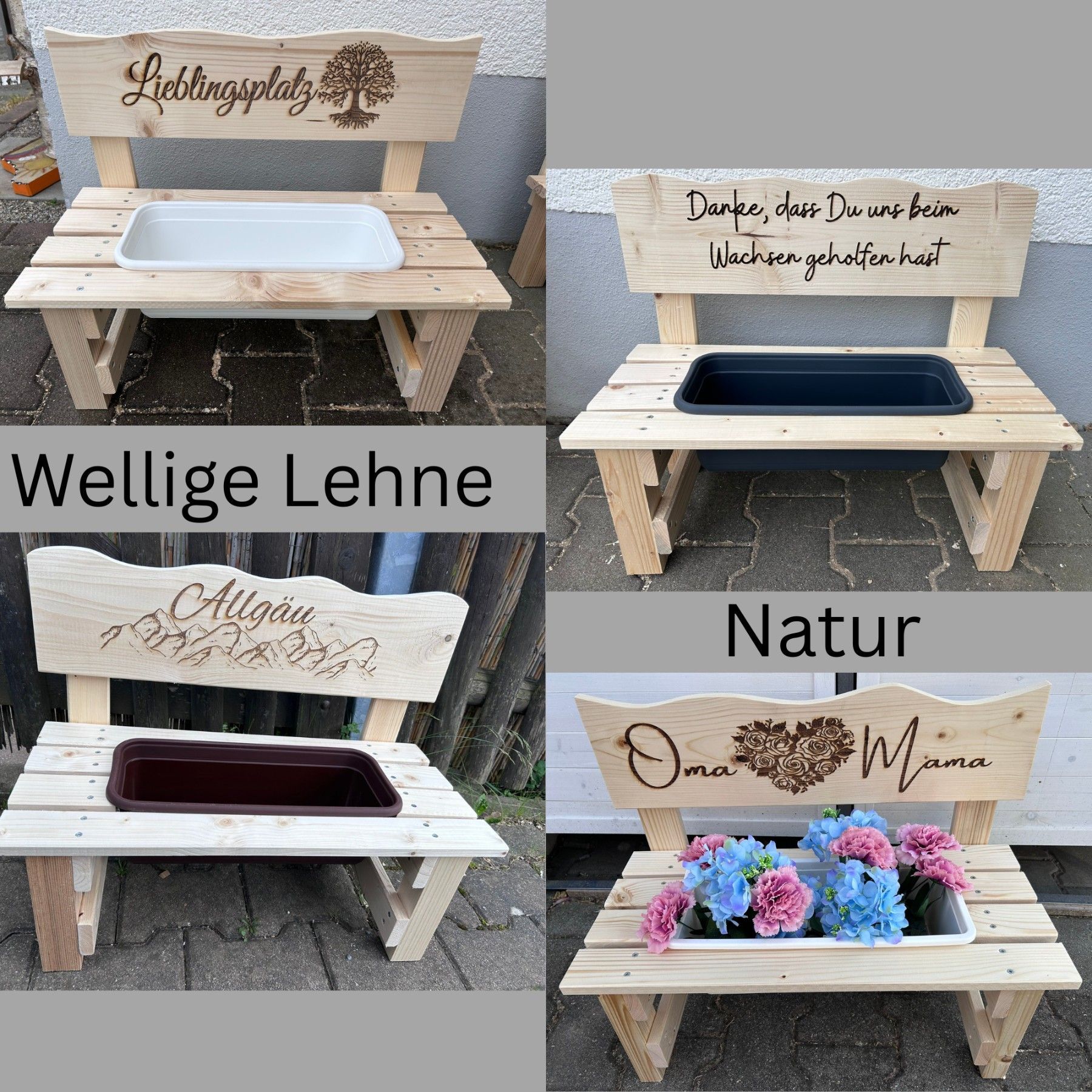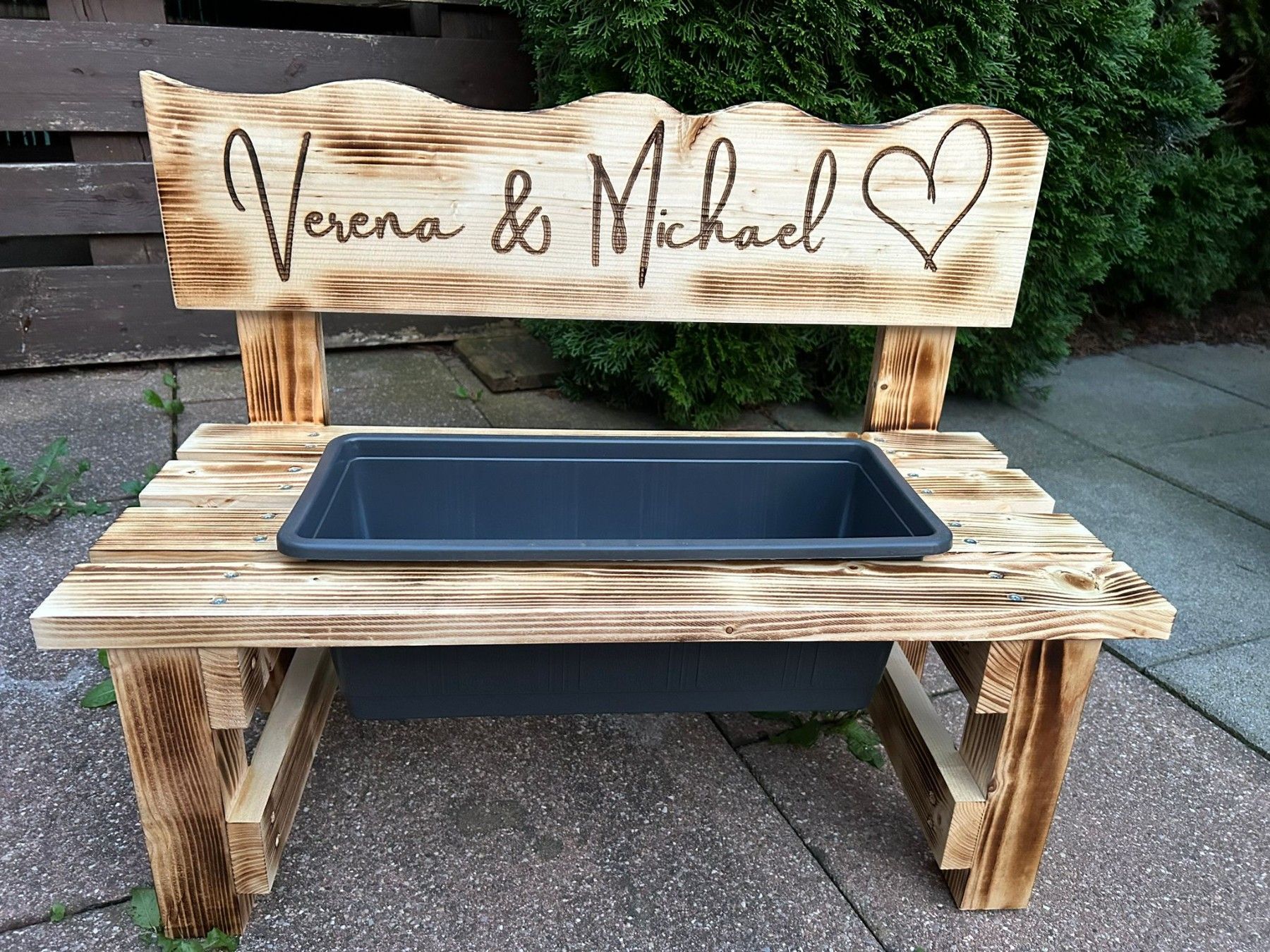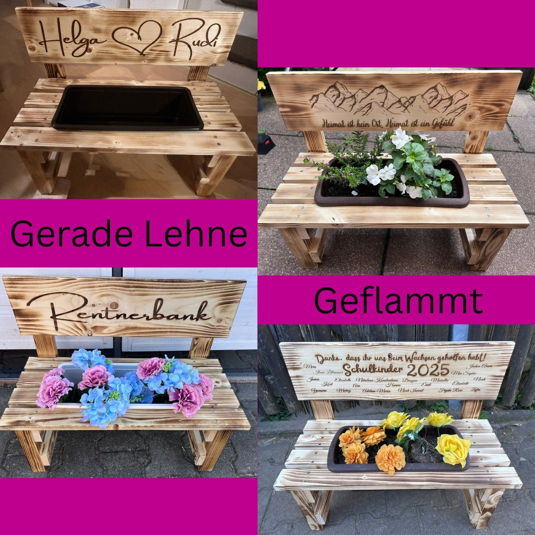 Personalisierte Blumenbank aus Holz mit Gravur | Handgemacht & wetterfest