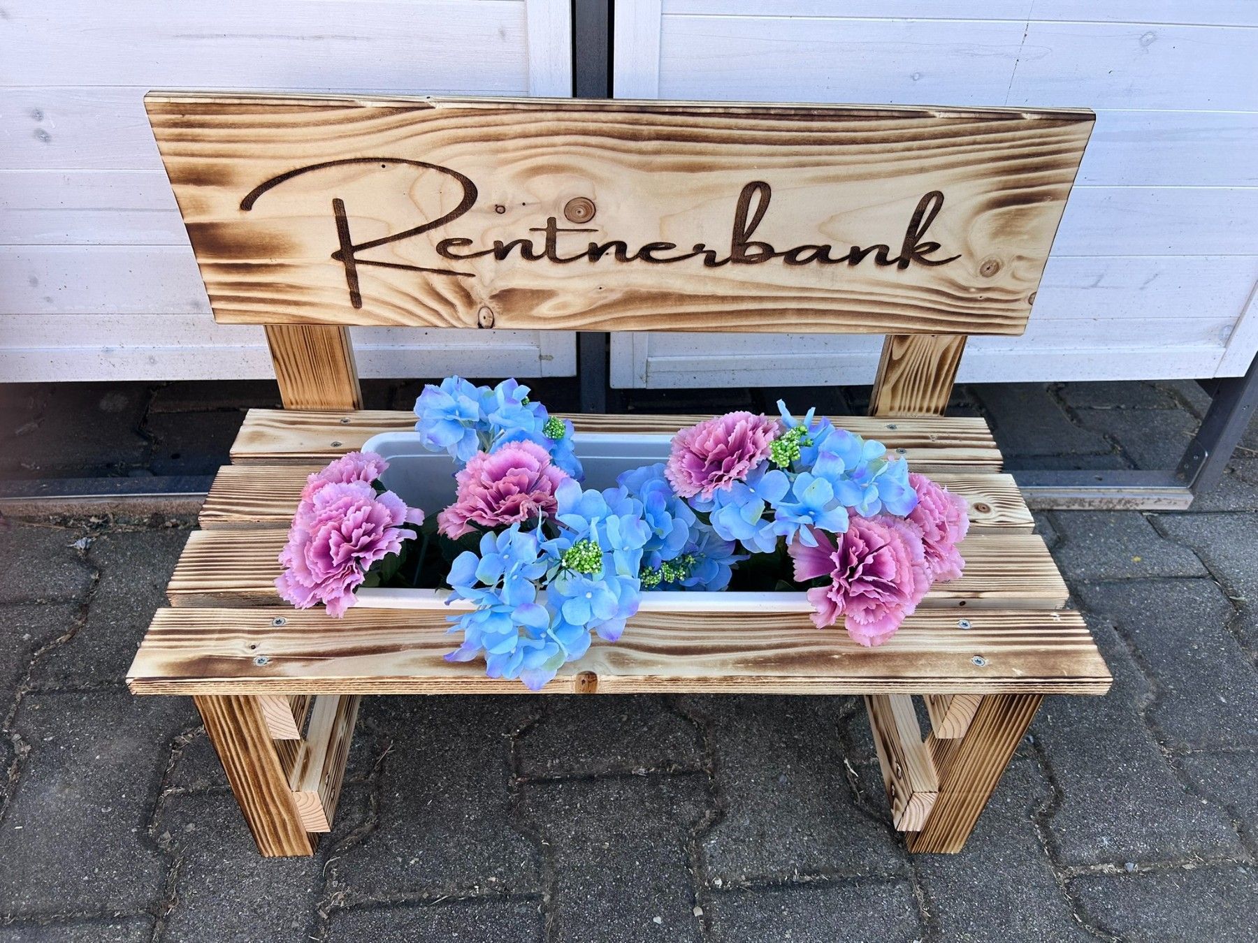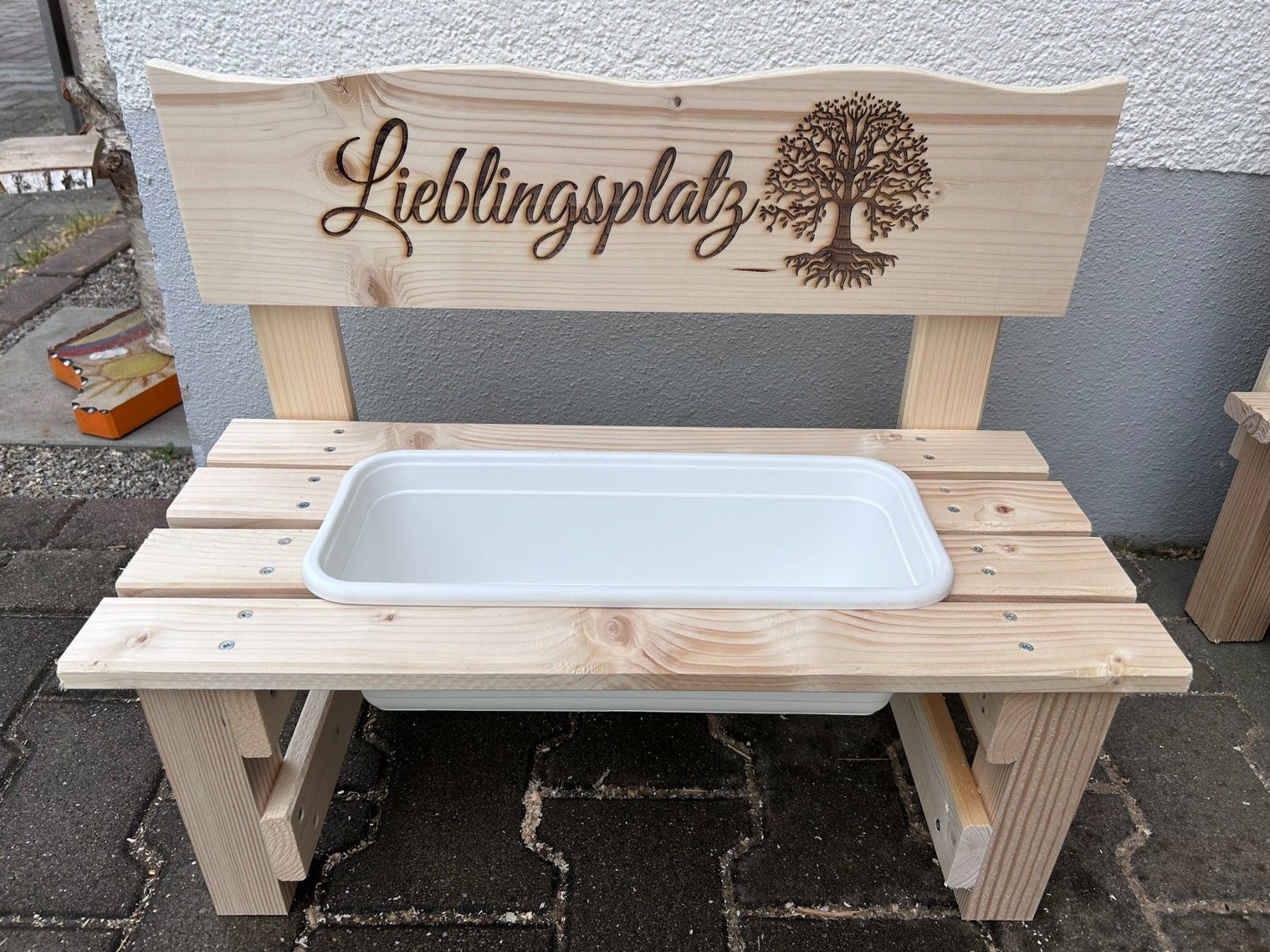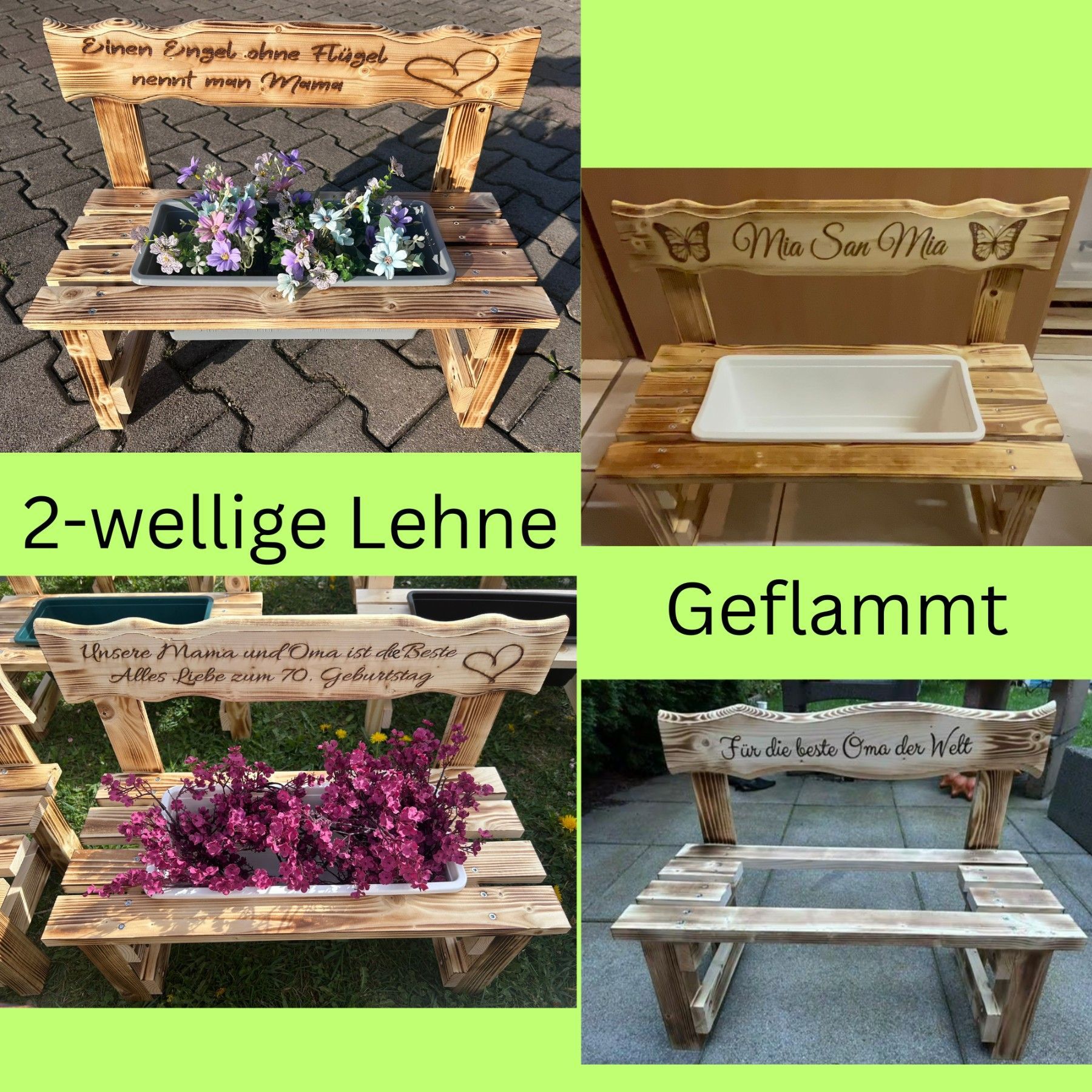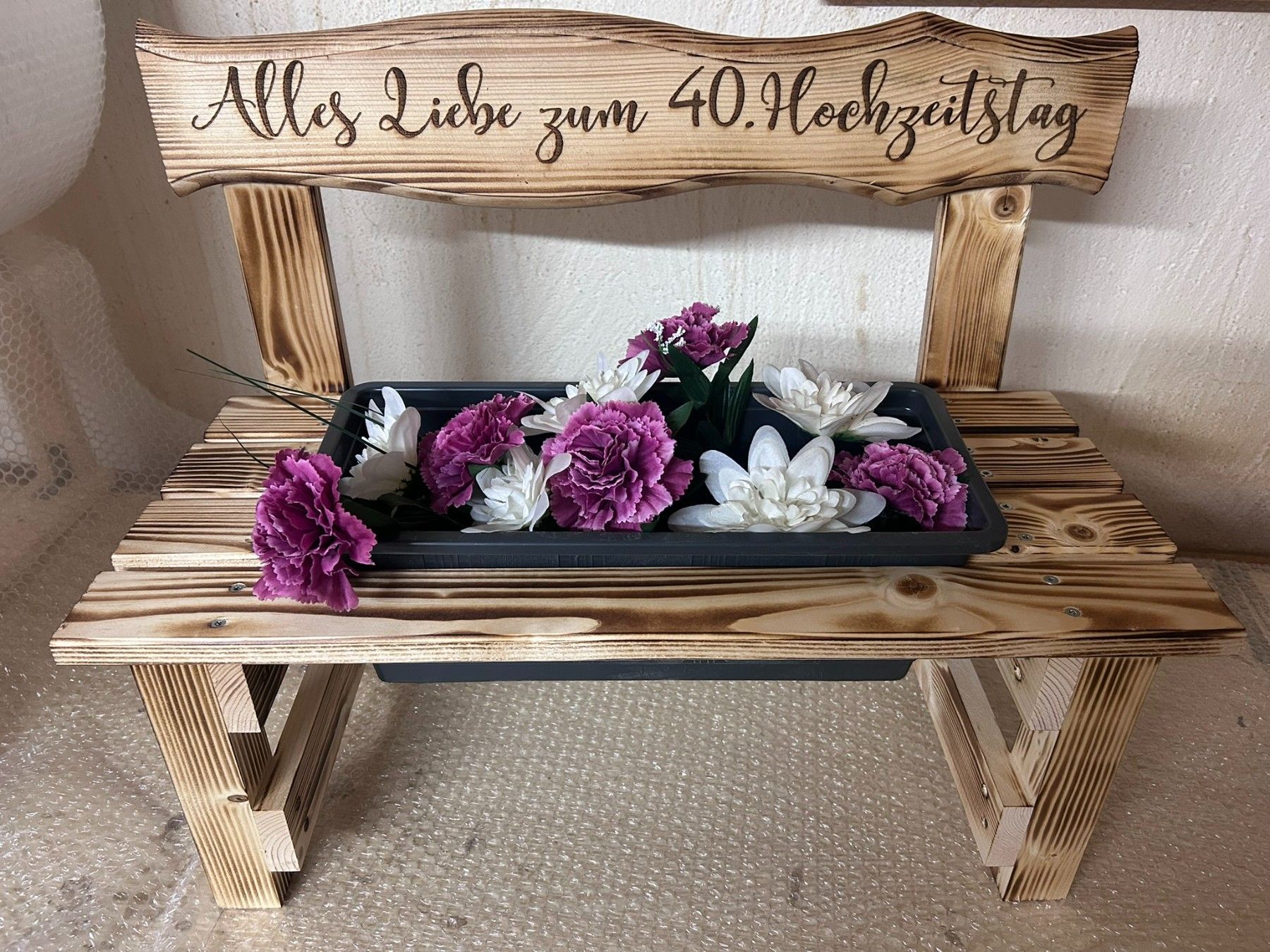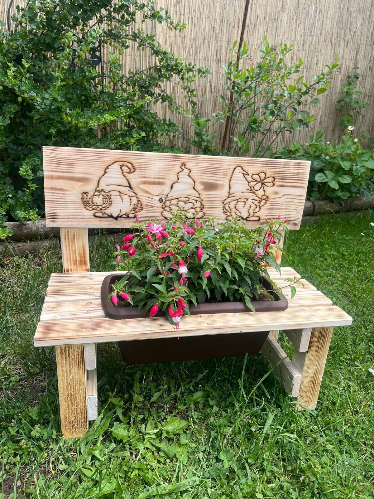Personalisierte Blumenbank aus Holz mit Gravur | Handgemacht & wetterfest