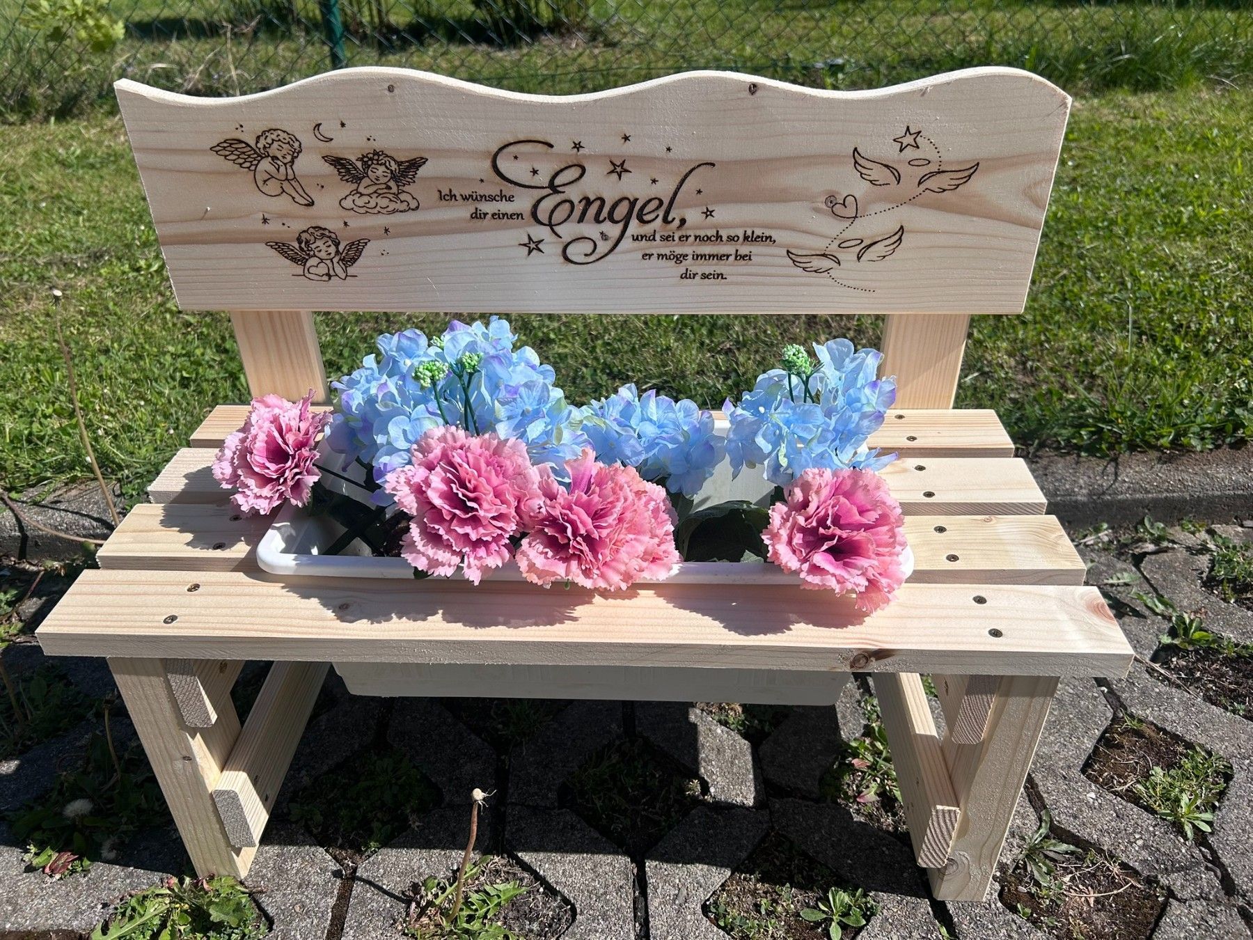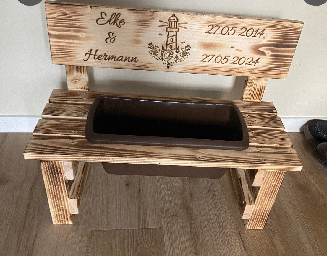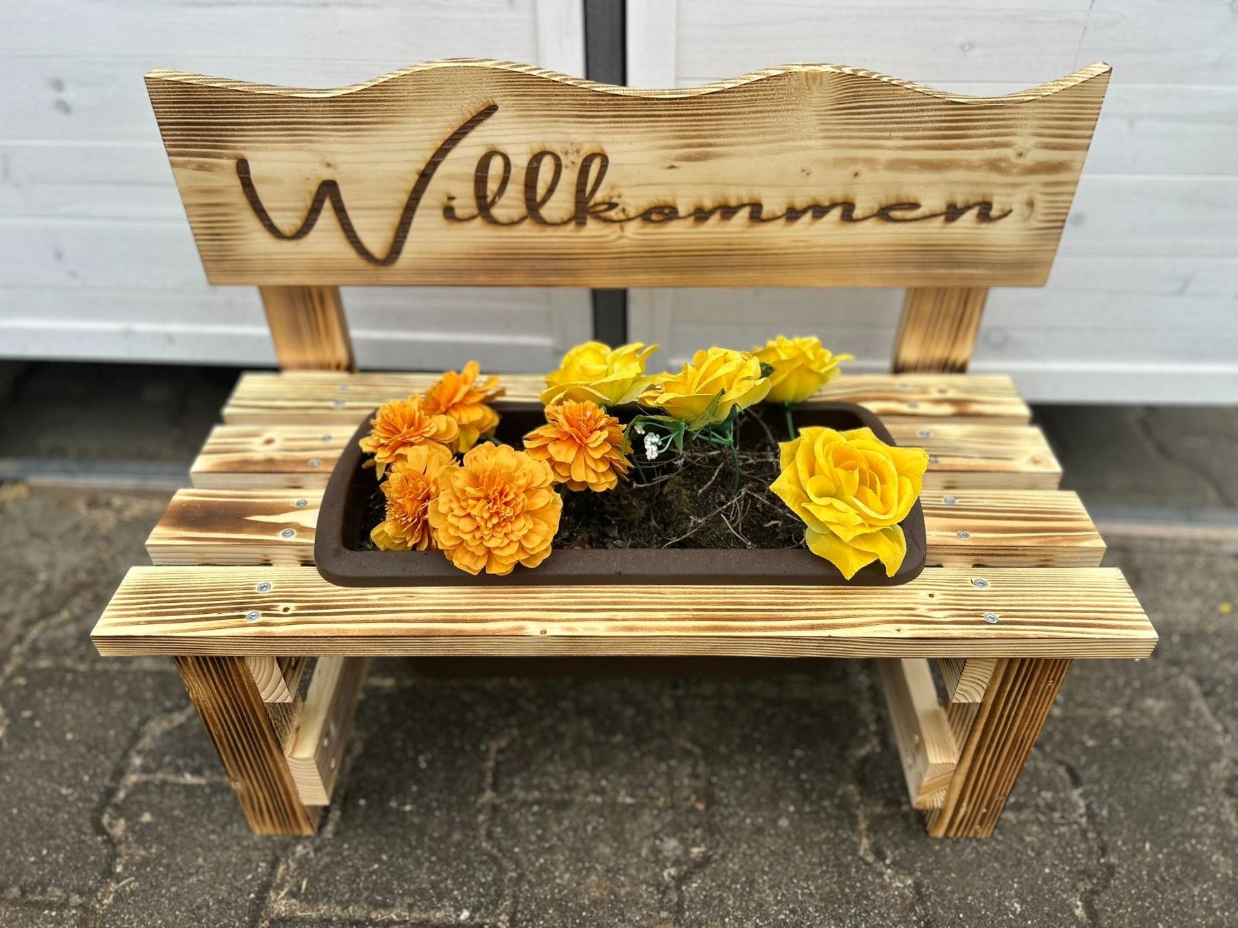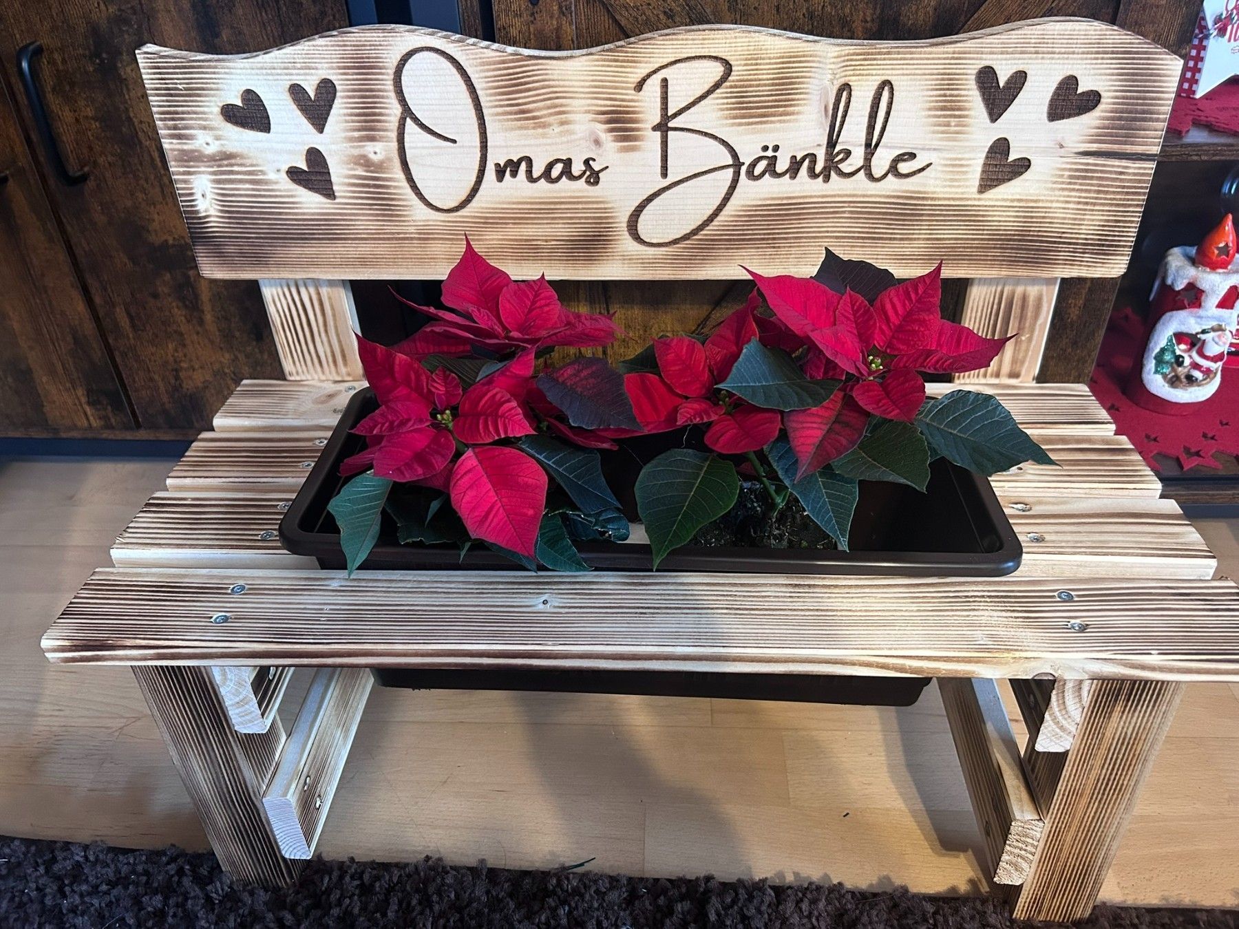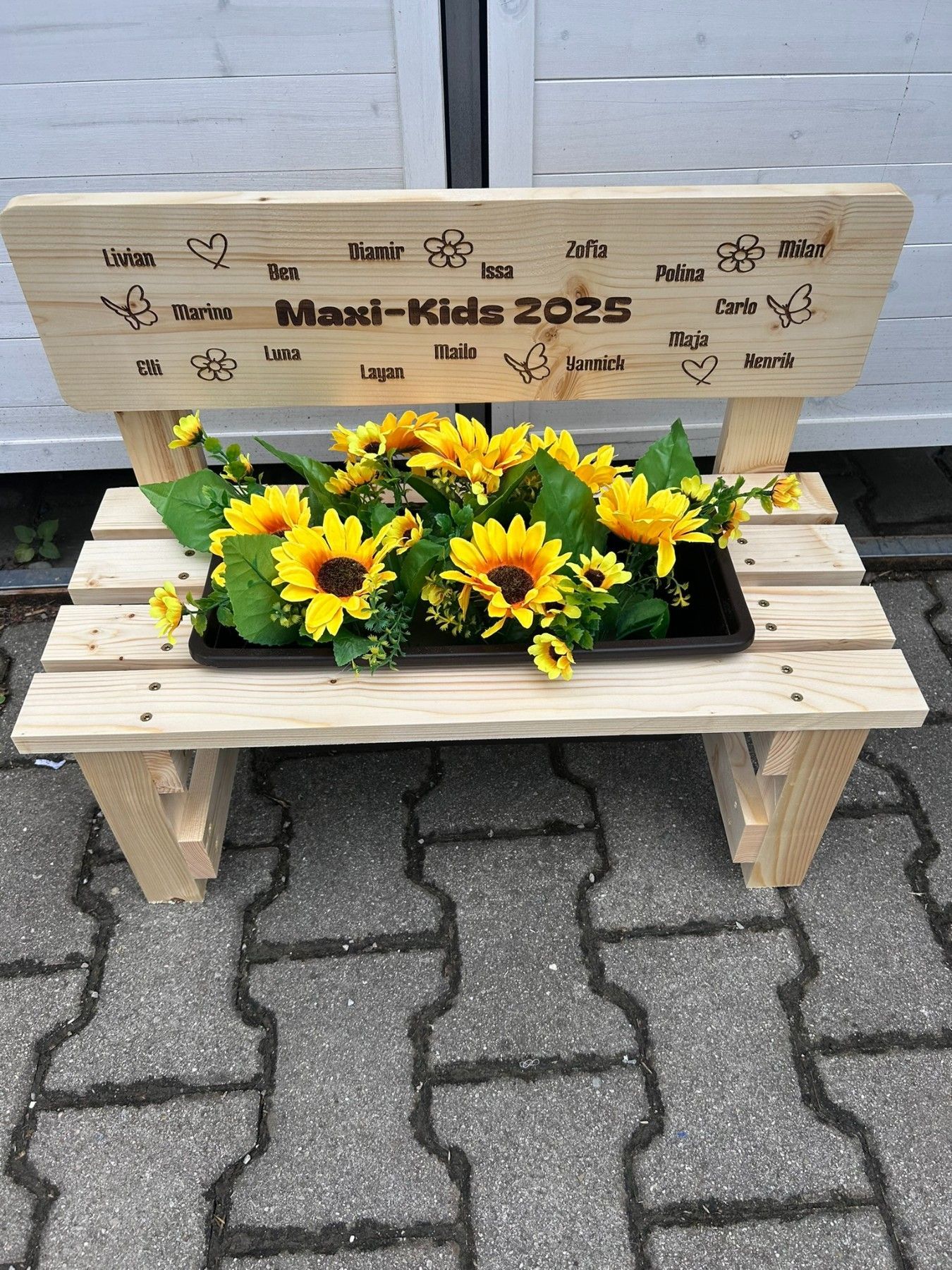 Personalisierte Blumenbank aus Holz mit Gravur | Handgemacht & wetterfest