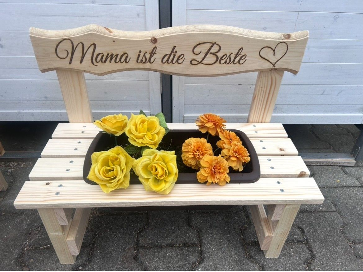 Handgefertigte Blumenbank aus massivem Holz – ideal für Garten, Terrasse oder Balkon. Mit Liebe gefertigt und auf Wunsch personalisierbar mit Gravur. Perfekt als Geschenk für Mama, Geburtstag Weihnachten oder Hochzeit. Rustikales Design, stabil und wetterfest – ein echter Blickfang für jede Blumendeko!