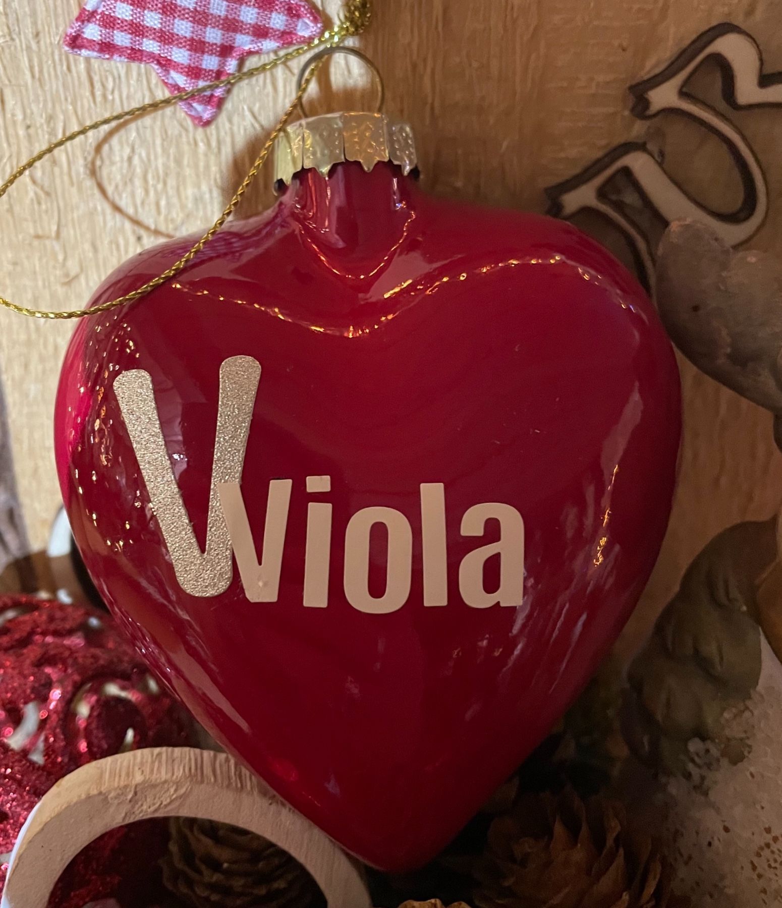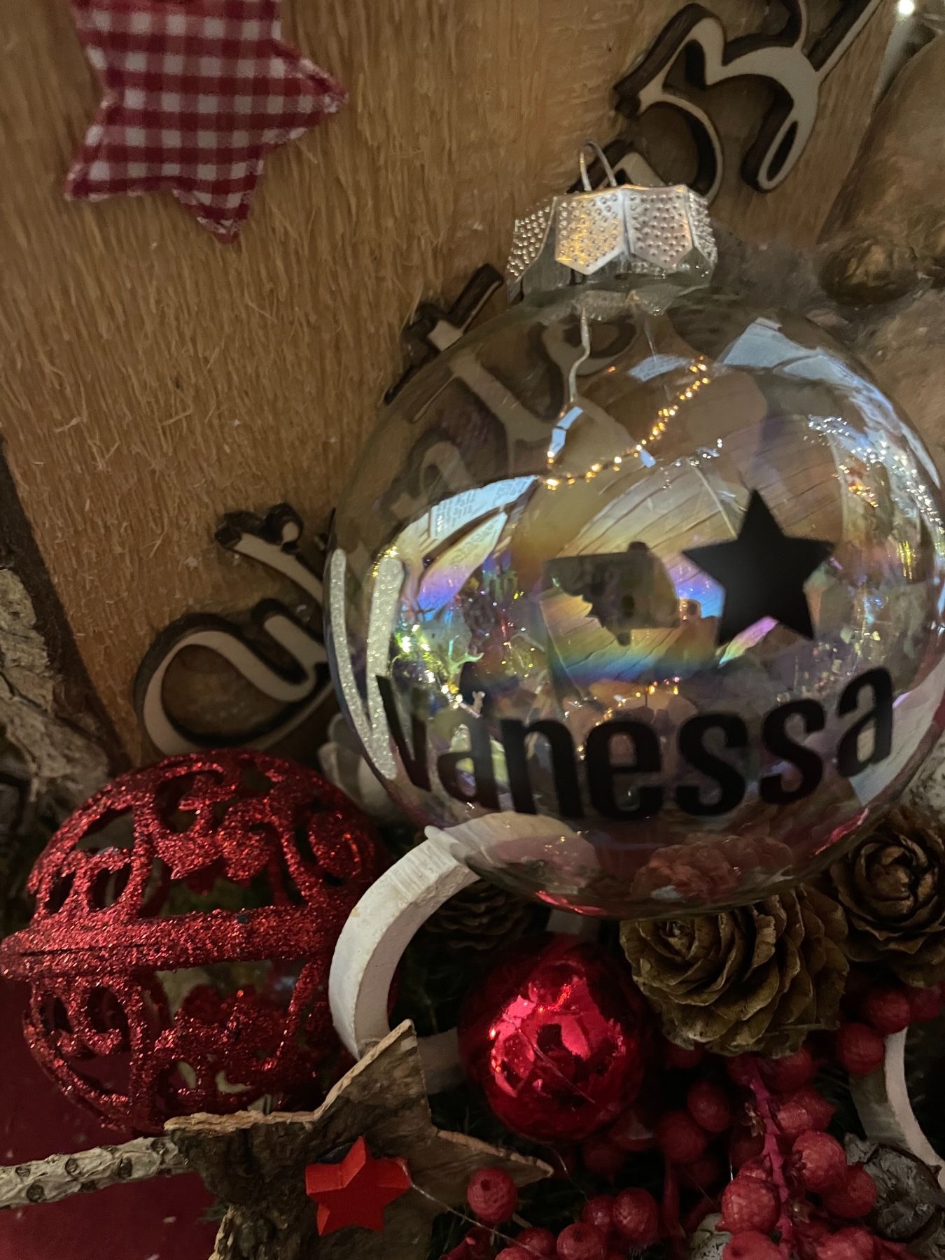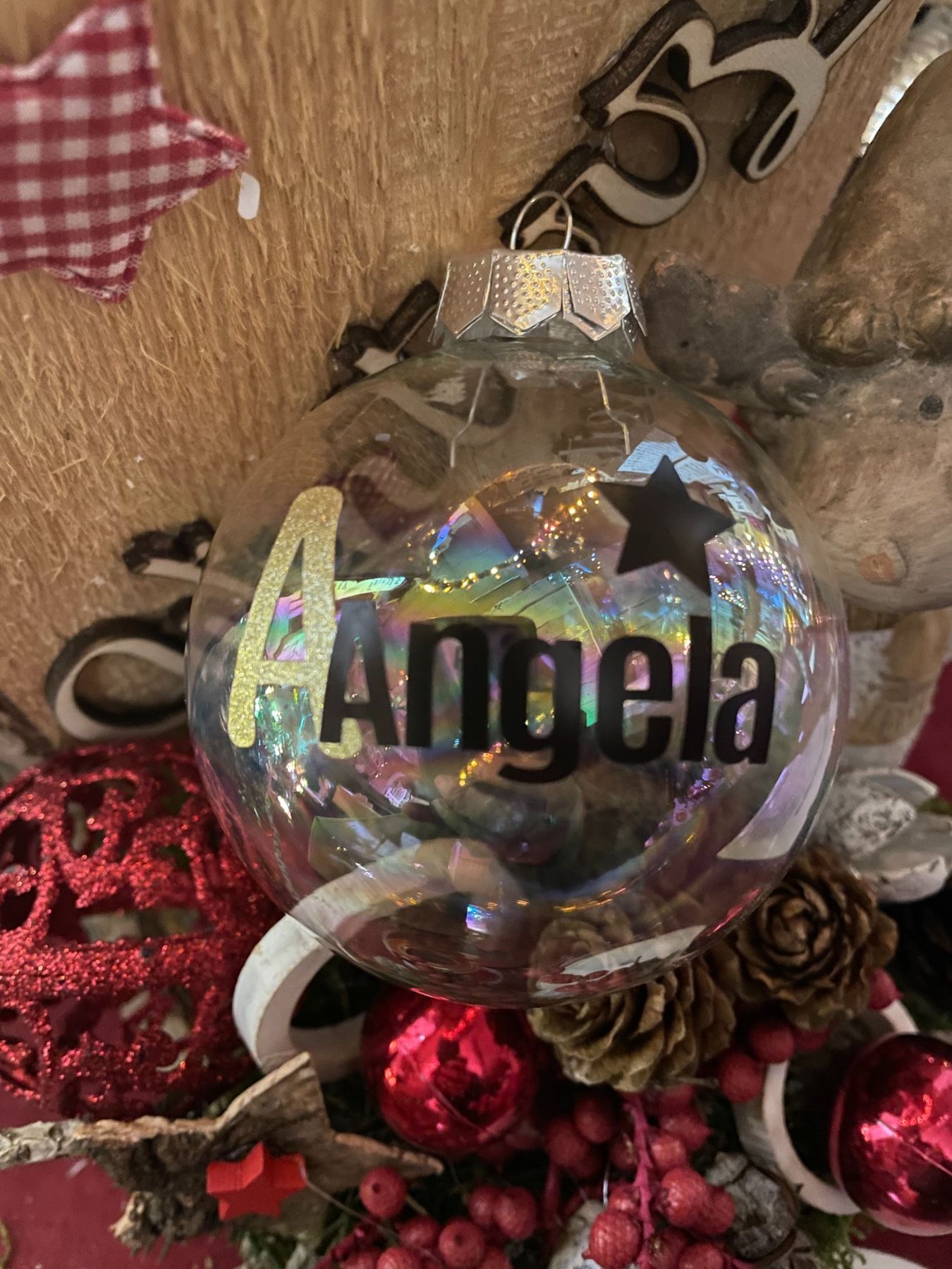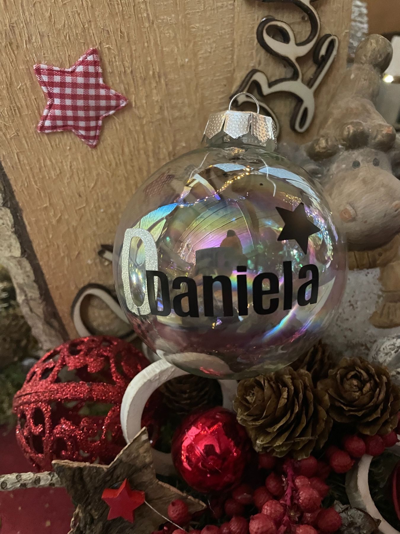 Hallo Ich biete personalisierte Christbaumkugeln an. Durchmesser 10cm aus Glas. ( Kunststoff gerne anfragen) Farbe frei wählbar Außerdem biete ich noch Herzen aus Kunststoff in den Farben rot und durchsichtig an. Ca 10cm