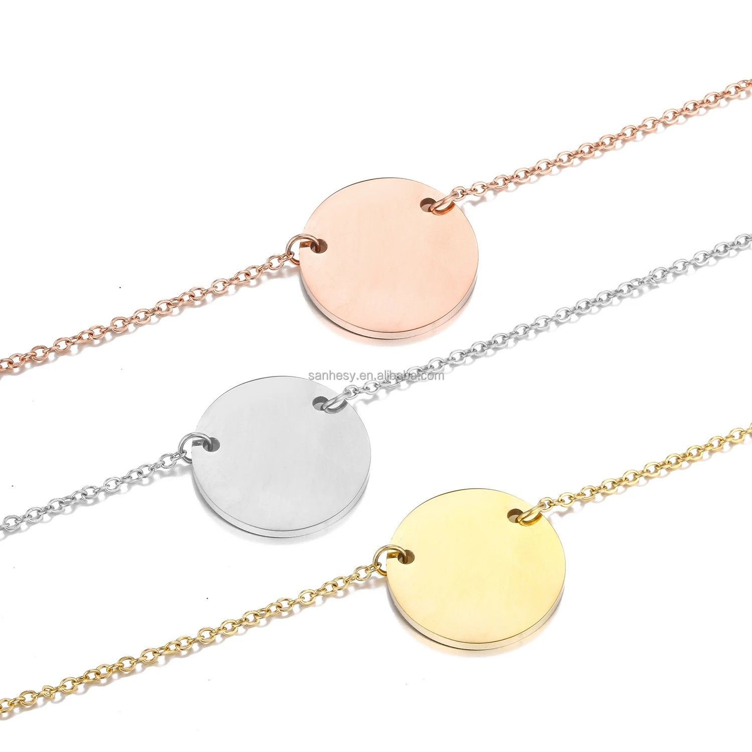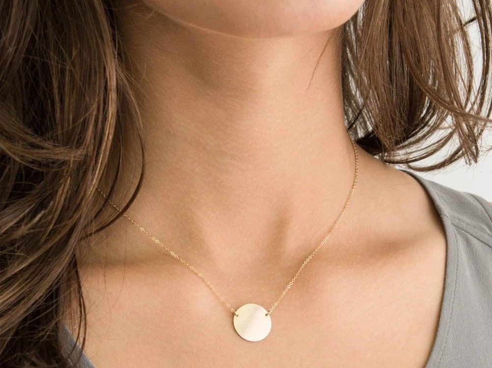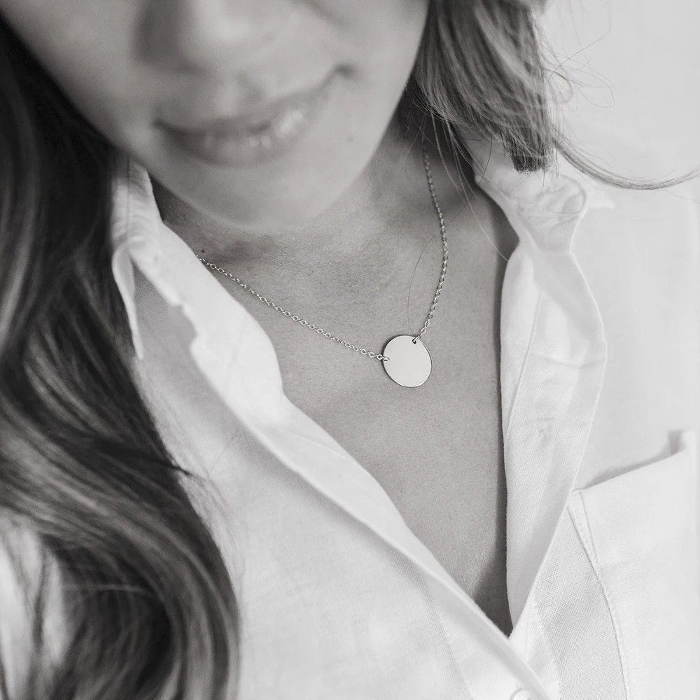 personalisierte Halskette aus Edelstahl & 14K Gold Personalisierter Runder Anhänger