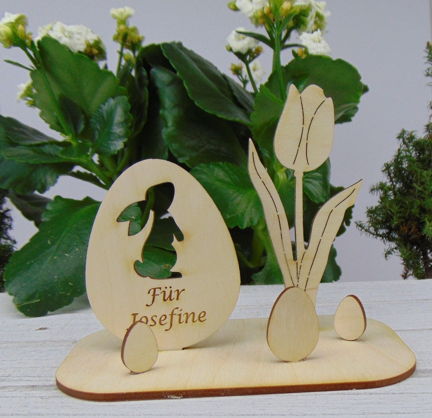 Personalisierter Ostereier Tischdeko zum bemalen Ostereier, Tulpe aus Holz