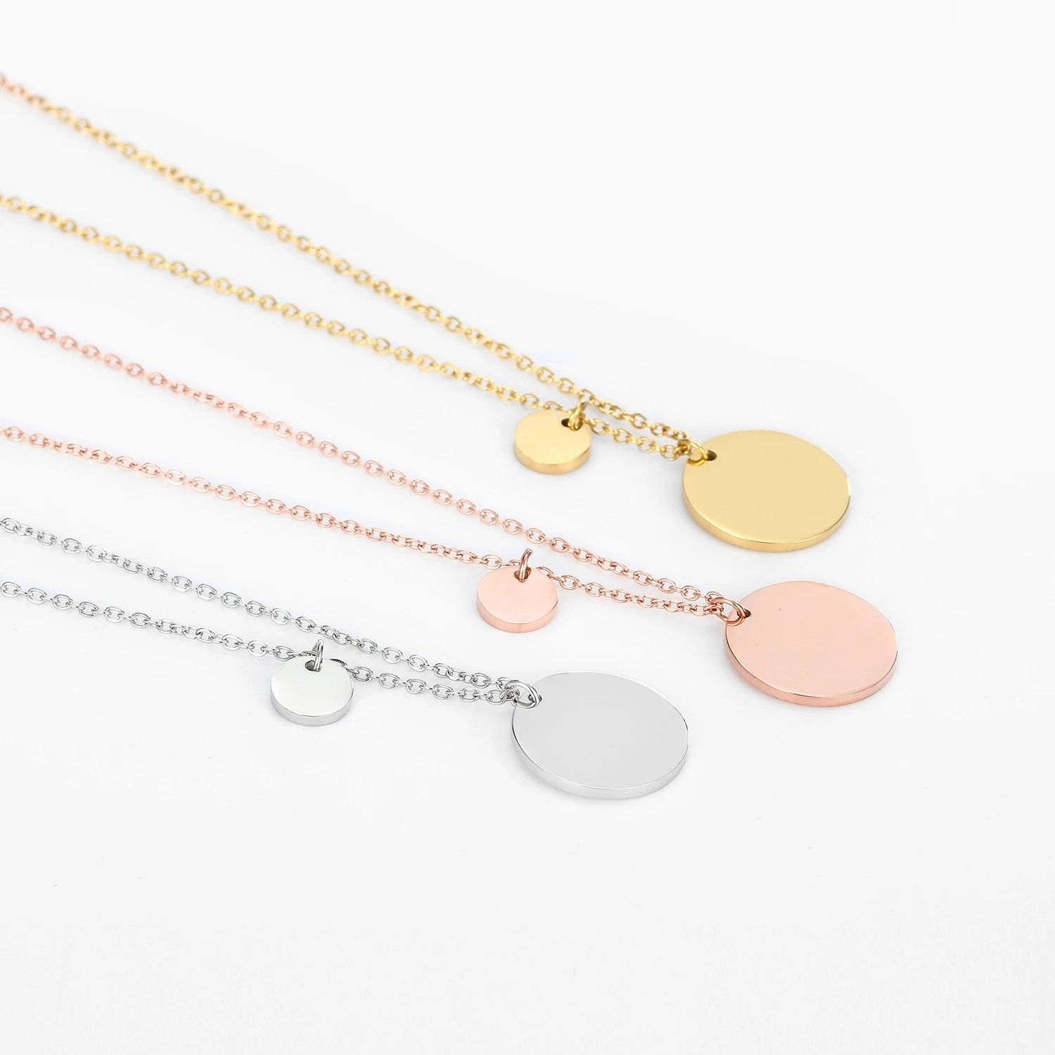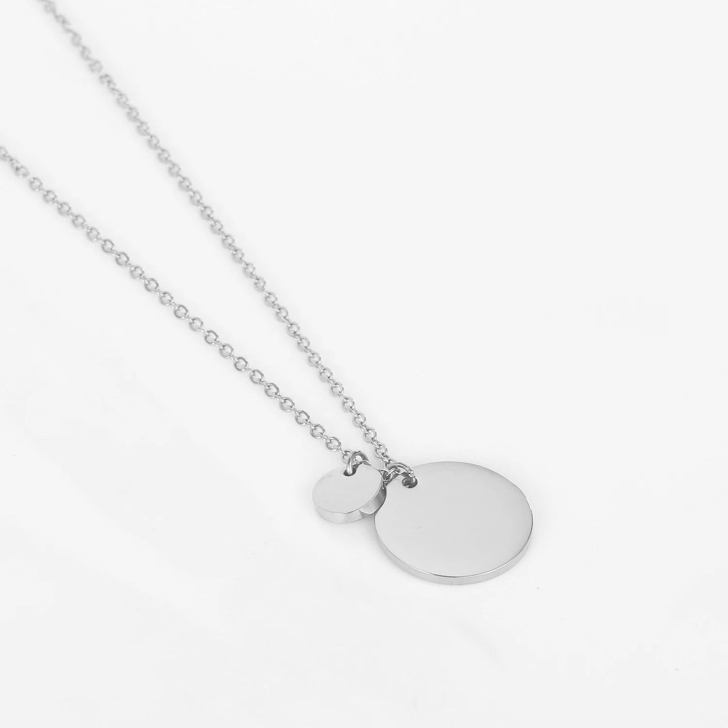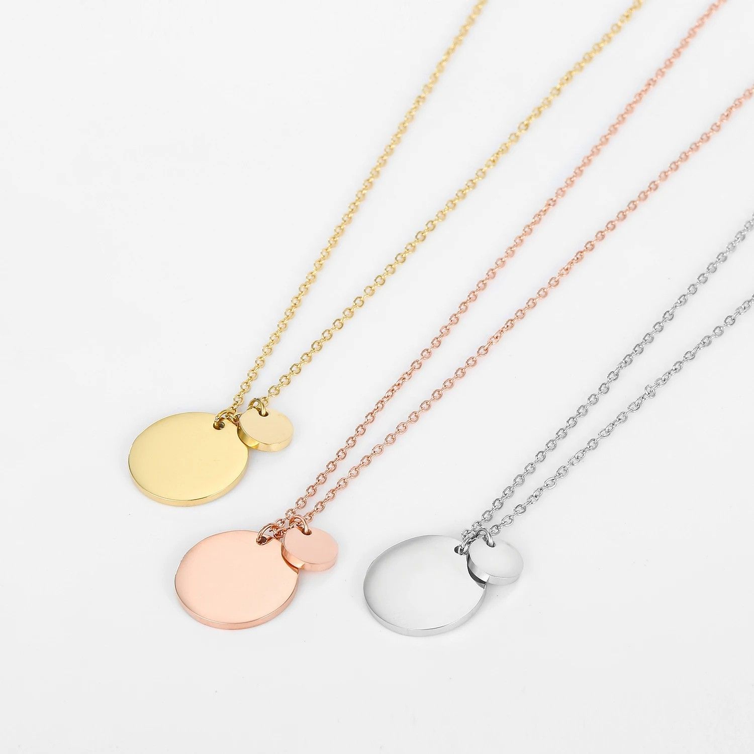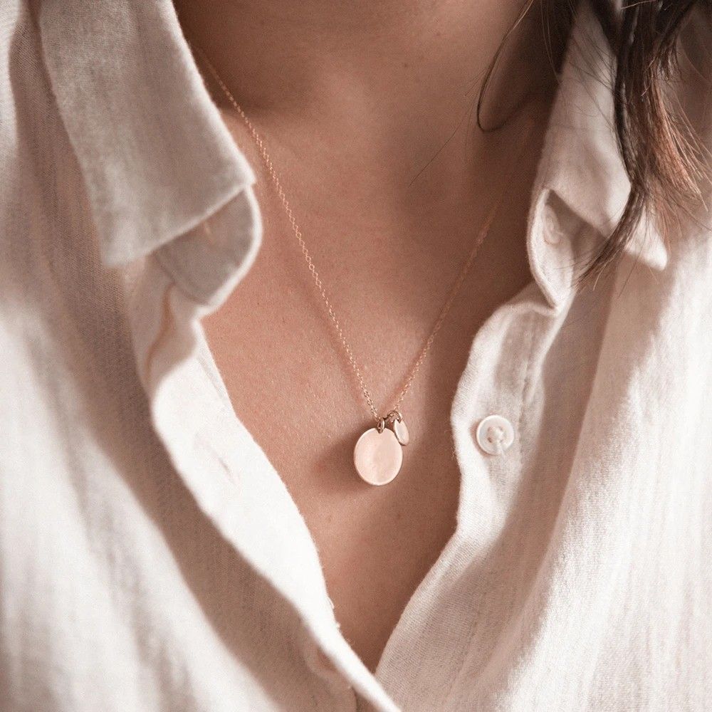 Personalisierter Runder Anhänger Zwei Kreise Größen 13 & 6 mm Edelstahl 14K vergoldet
