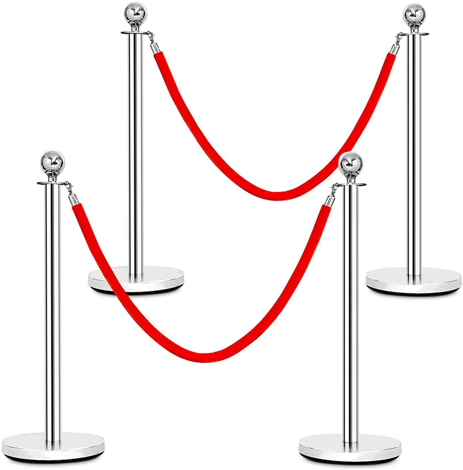 Personenleitsystem, 4 Abgrenzungsständer mit 2 Kordeln, Absperrständer Absperrpfosten