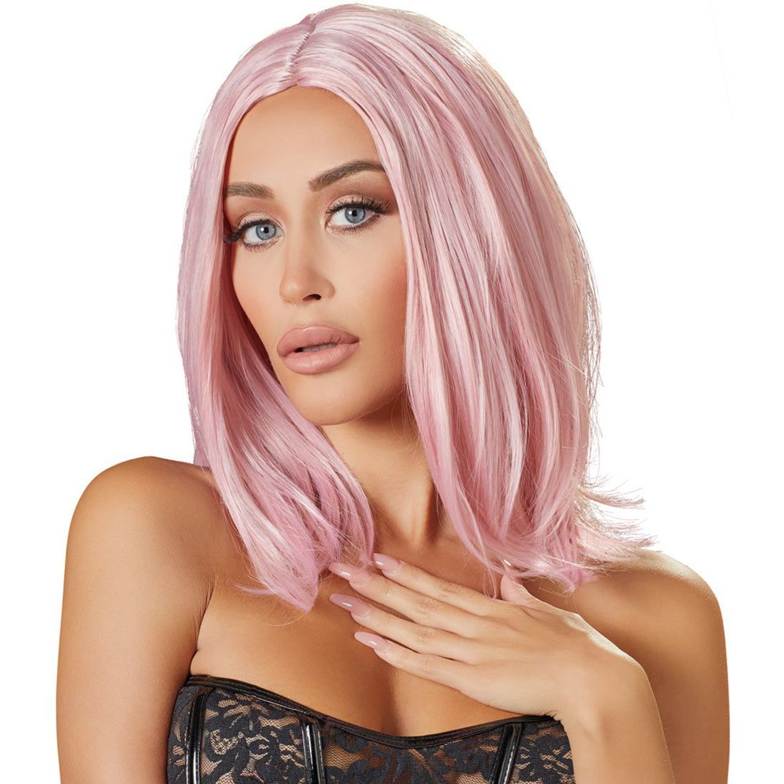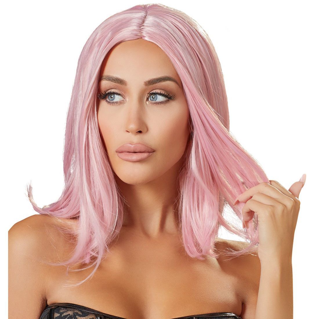 Perücke Bob pastell Rosa + 30cm lang + Cosplay 70er Jahre + Damen Pink Fasching