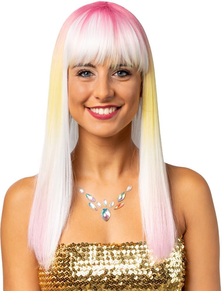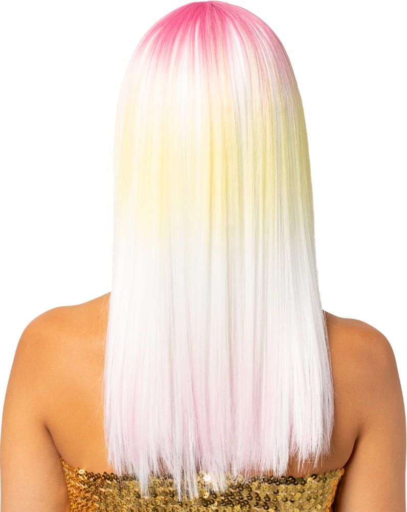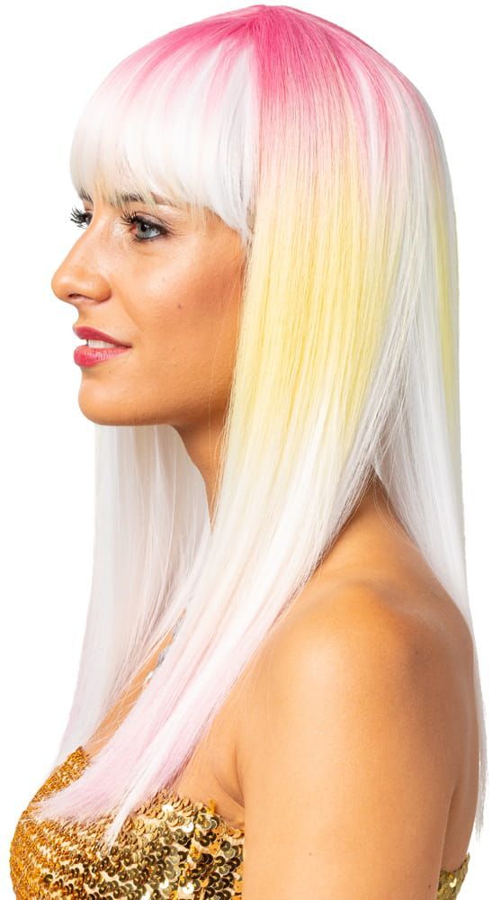 Perücke Langhaar mit Farbverlauf weiß rot gelb