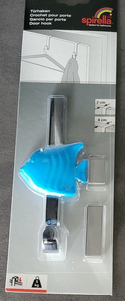 Pesca Azur Blau Türhaken Schrankhaken Fischmotiv Metall verchromt