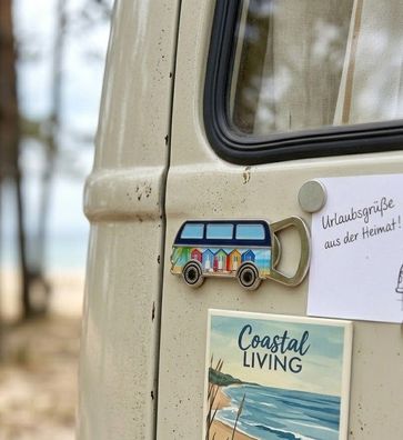 • Magnet-Flaschenöffner "Bulli-Beach" - Maritimer Flaschenöffner im Bus-Design