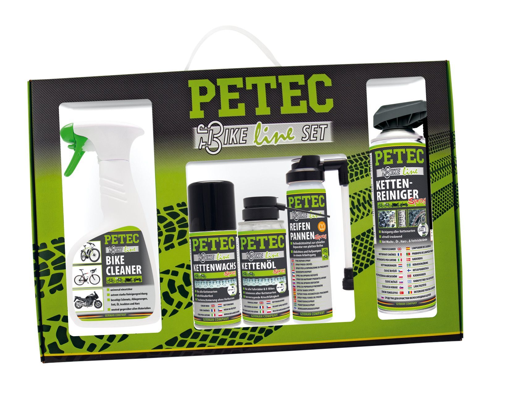 Petec PETEC Bikeline Fahrrad Reinigung Pflegeset Motorrad Kettenpflege Pannenspray