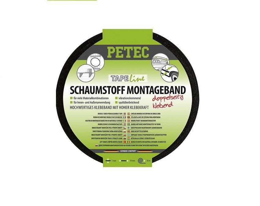 Petec Petec Schaumstoff-Montageband schwarz 10 m x 19 mm x 1 mm