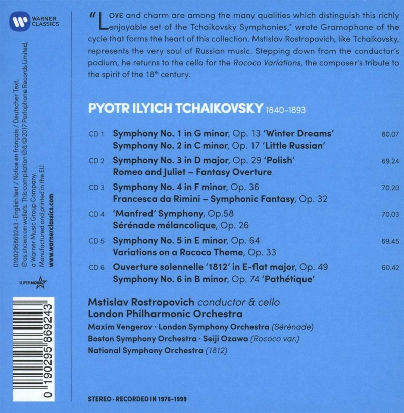 Peter Iljitsch Tschaikowsky (1840-1893): Symphonien Nr.1-6 - Warner Cla 9029586924