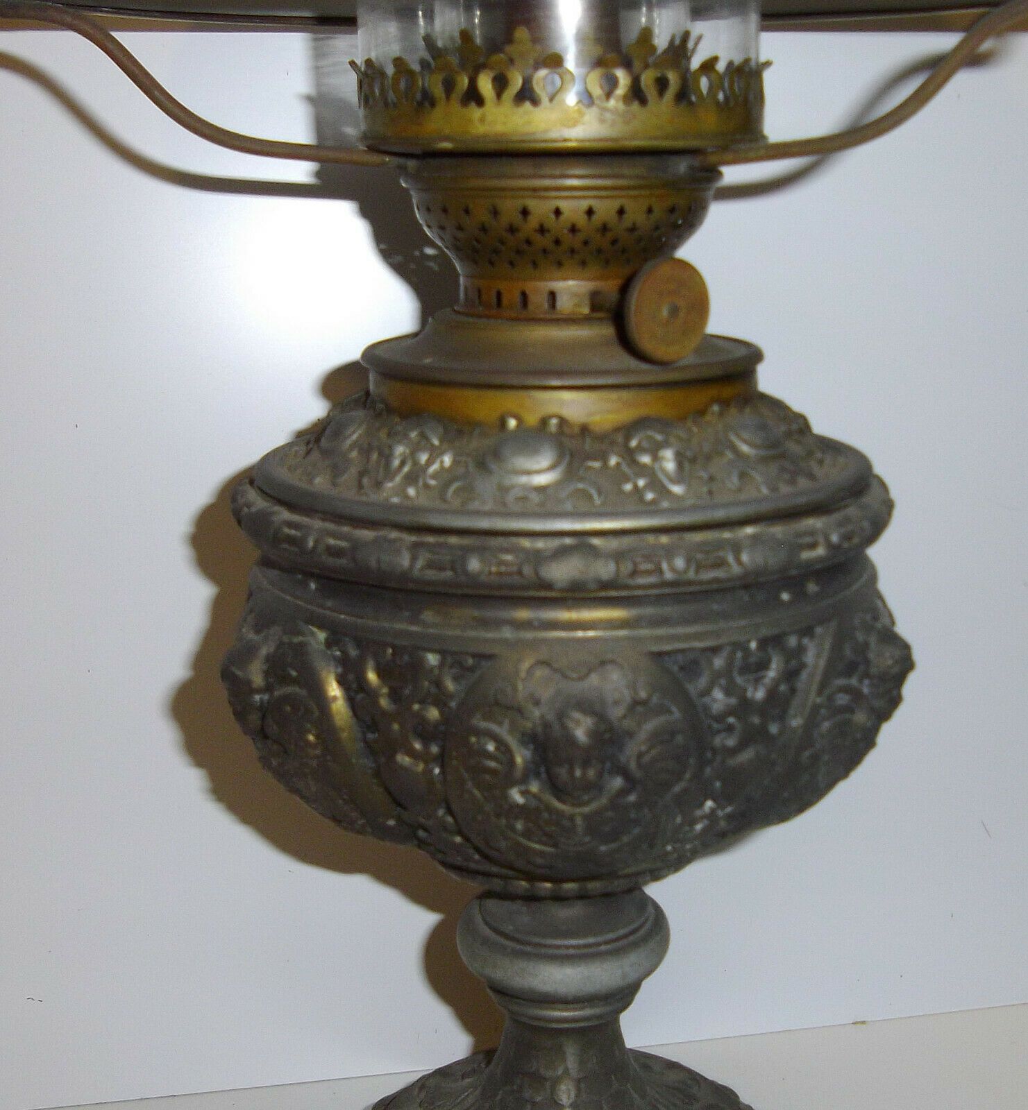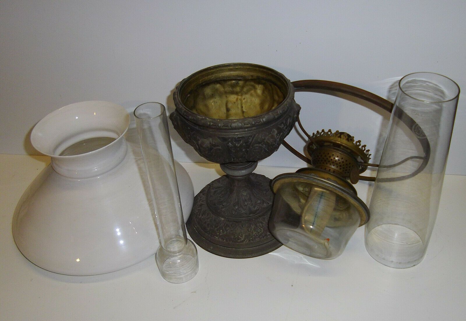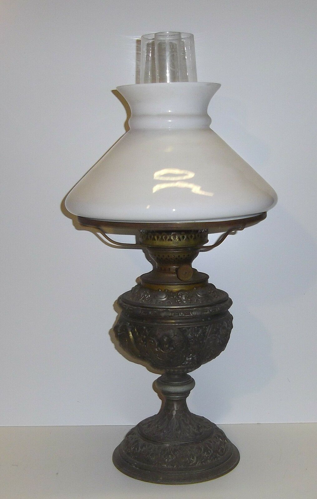 Petroleum-Tischlampe um 1900 (Historismus). Material: Zinkguss-Korpus Glasschirm. Besonderheit: Zwei Glaskolben ineinander. Funtionsfähig. Maße: H 57 cm. Kein Versand! Nur für Selbstabholer. Antikes am Deich - Inh: Oliver Kipp-Trense G M T Sprache erkennen Afrikaans Albanisch Arabisch Armenisch Aser