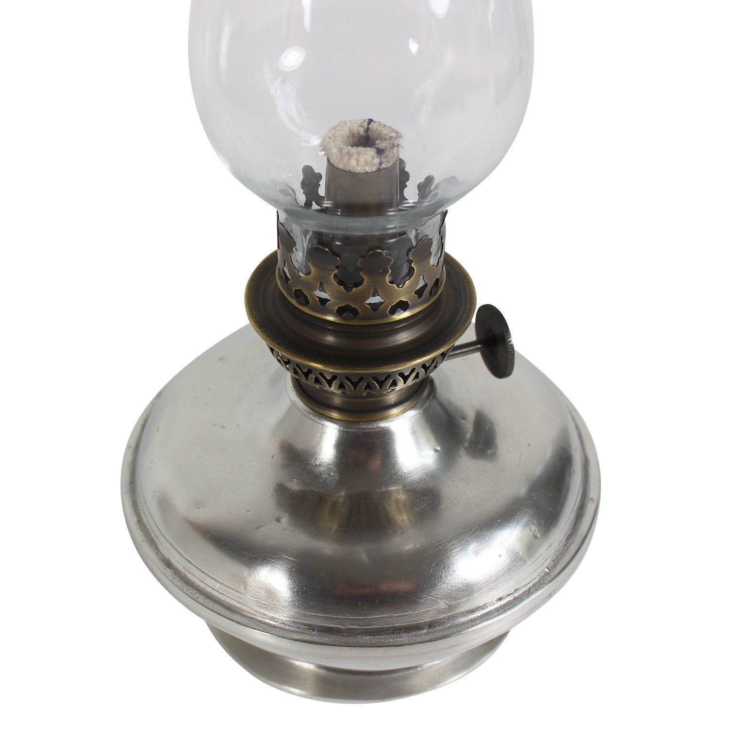 Petroleumlampe "Lombardia", handgearbeitet, Zinn-Behälter, Antikbrenner, H 32,5 cm