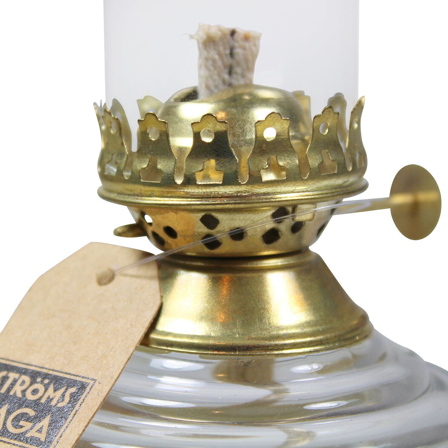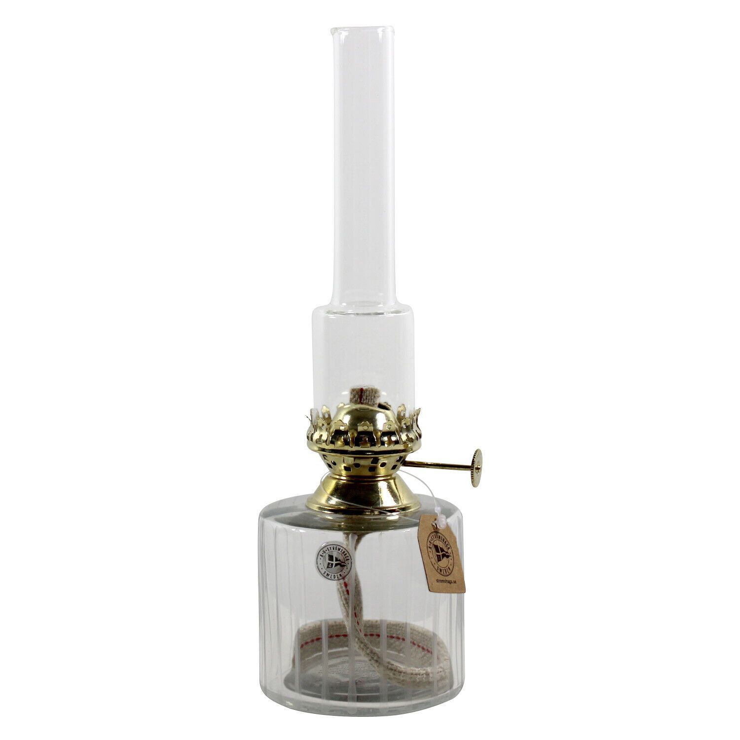 Petroleumlampe TUBUS, rund, Glasbehälter, Messingbrenner, Höhe 25 cm,