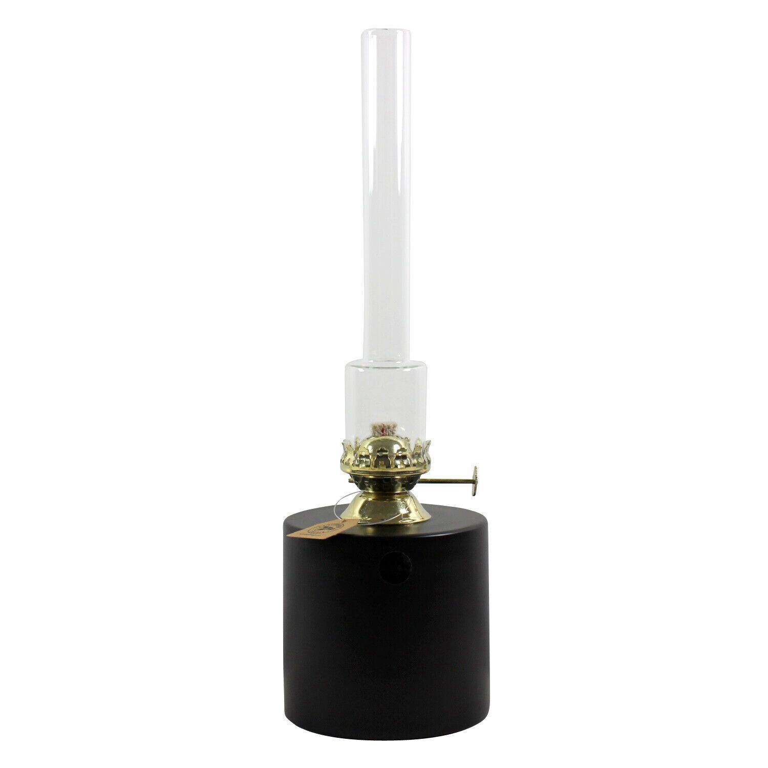 Petroleumlampe TUBUS, rund, schwarzer Behälter, Messingbrenner, Höhe 30 cm,