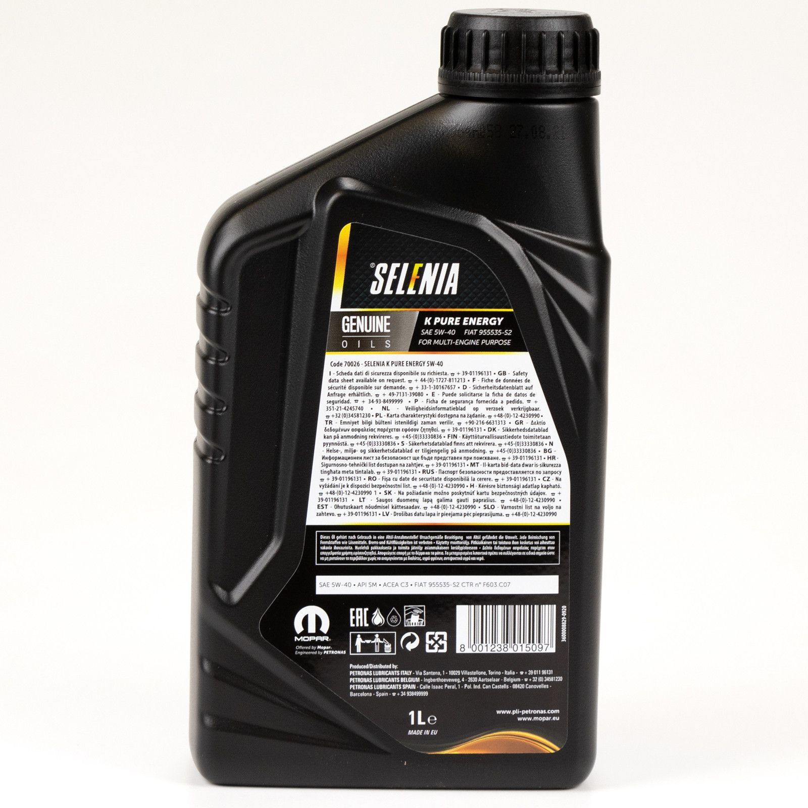 Petronas Selenia Pure Energy Motoröl Öl 5W40 1L 1 Liter C3 SN/CF Fiat 9.55535-S2