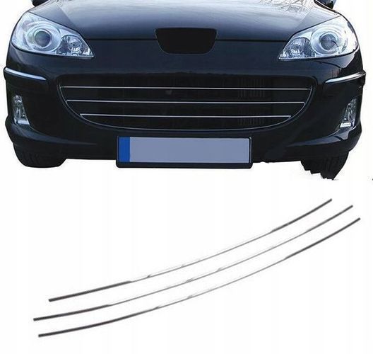 Peugeot 407 – CHROM-Leisten für GRILL-Attrappe, 3 Stück Tuning Chrom